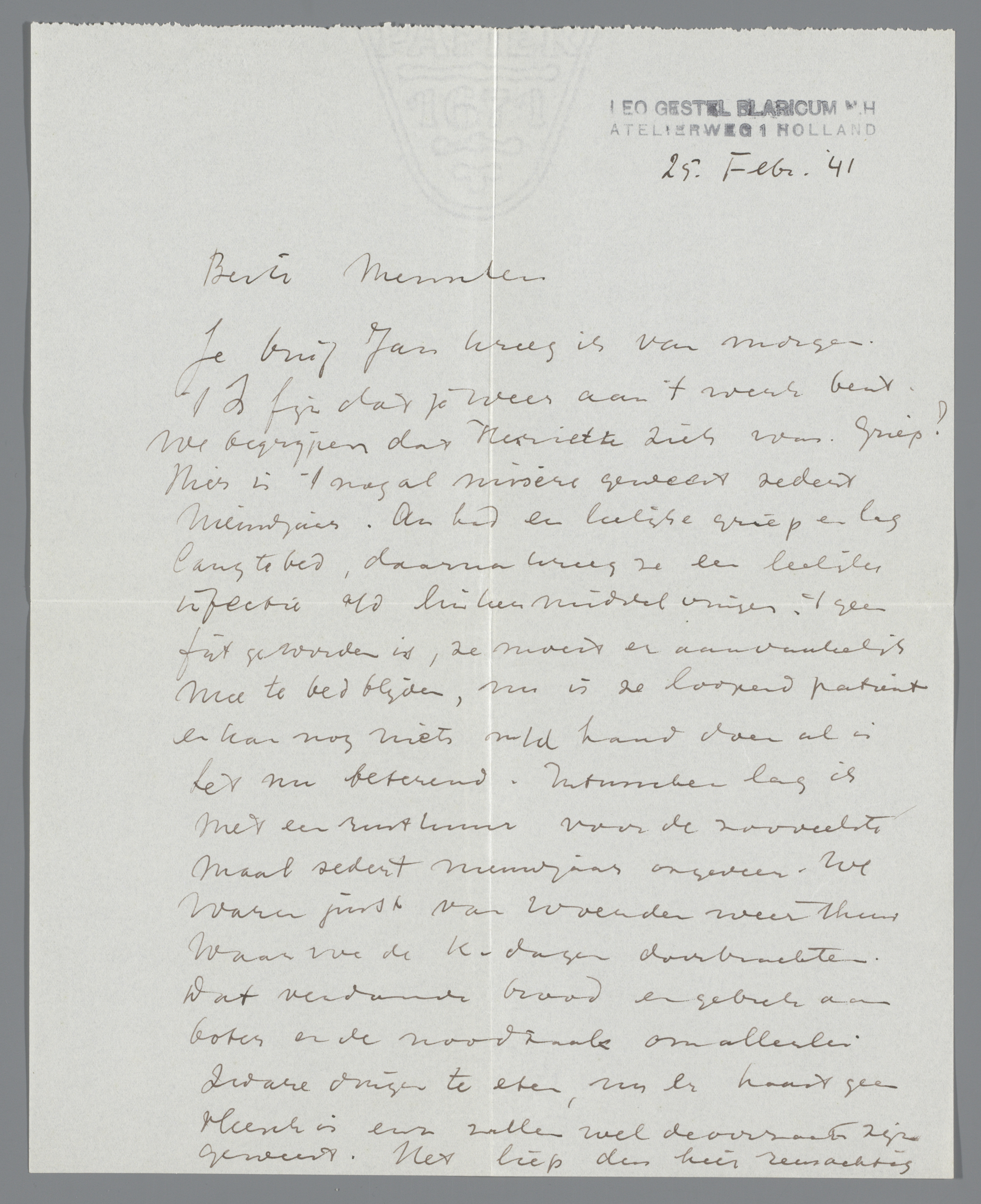 Brief aan Henriëtte Johanna Petronella van Hilten