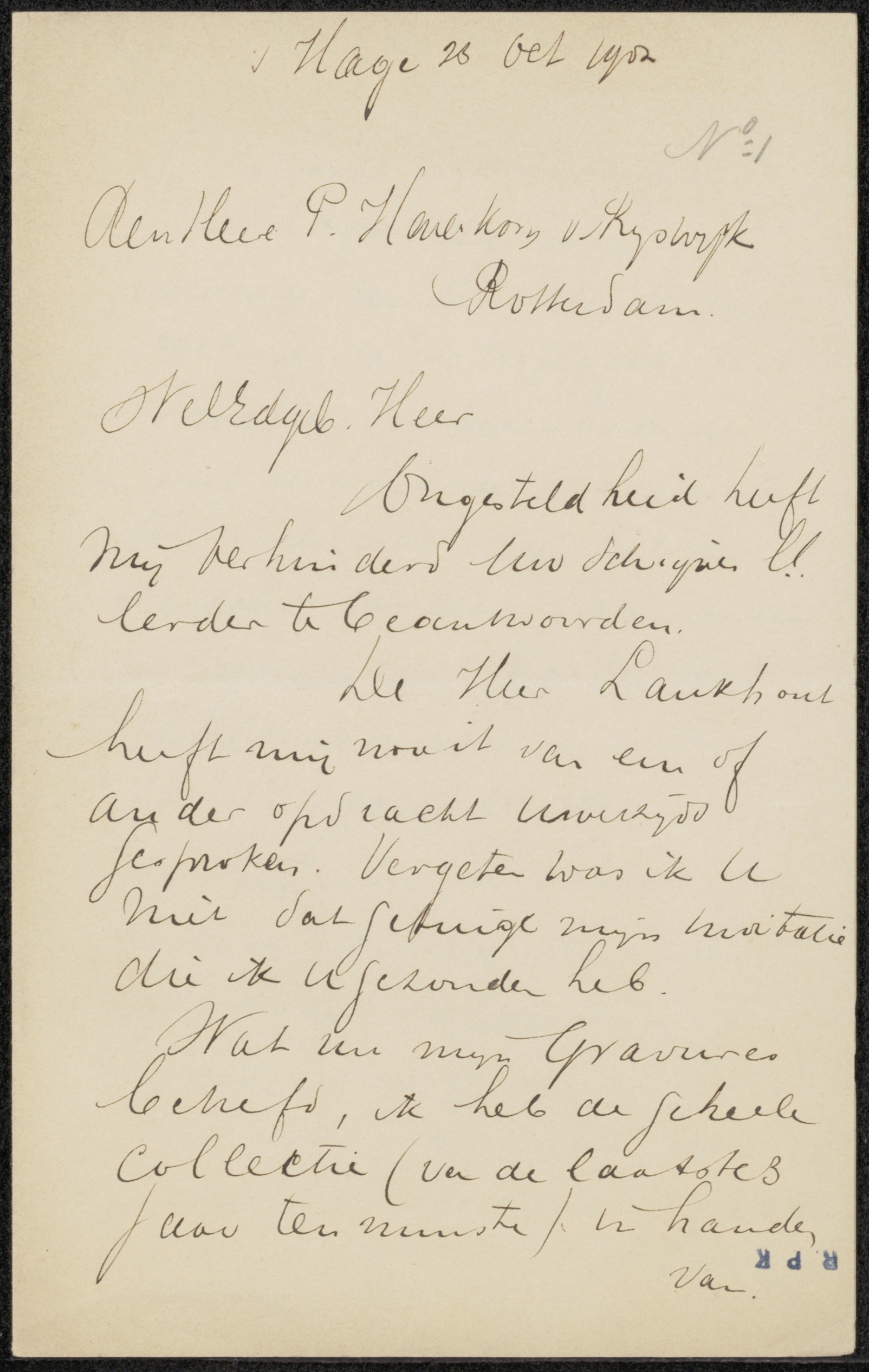 Brief aan Pieter Haverkorn van Rijsewijk