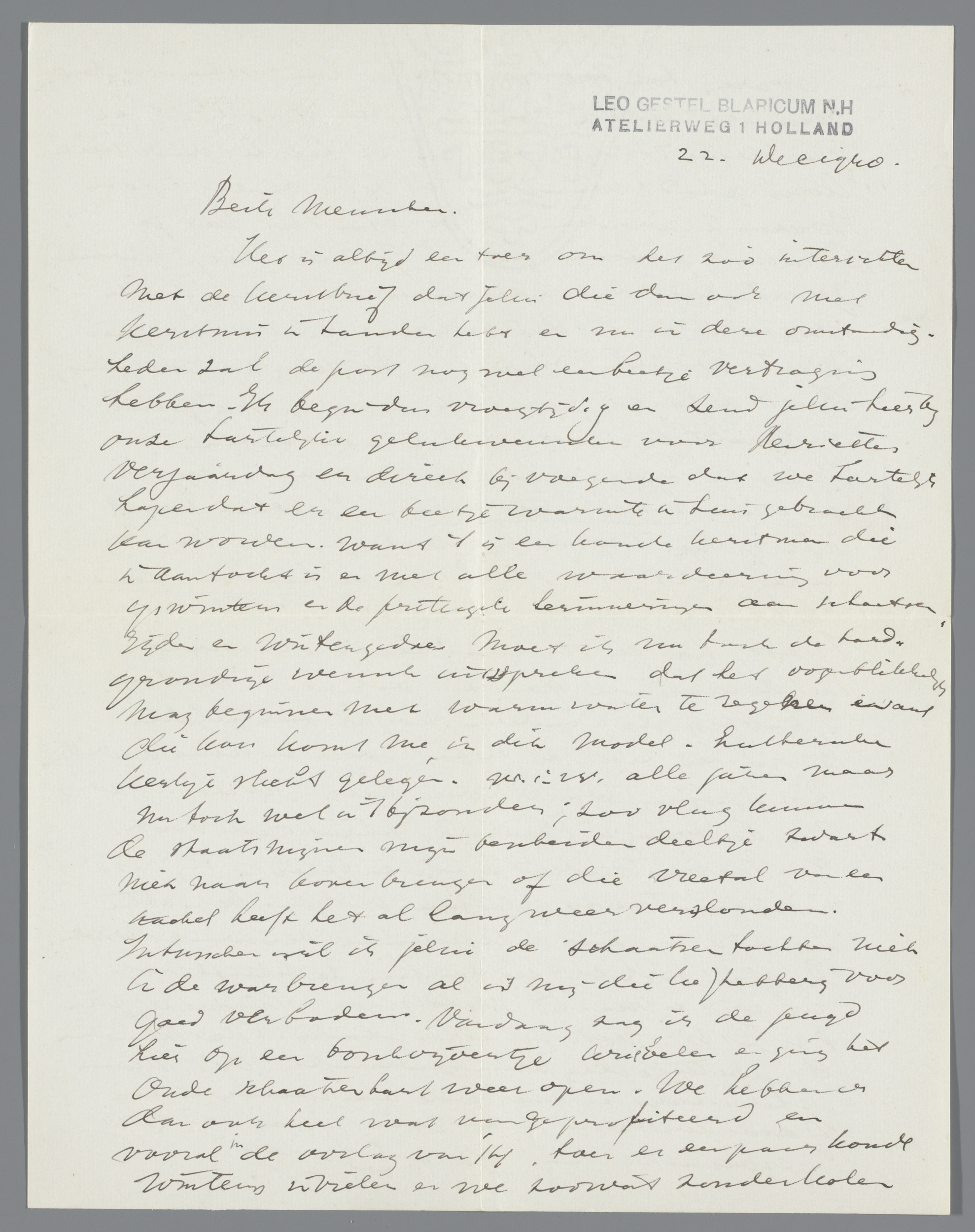 Brief aan Hendrik Willem Mesdag in Den Haag