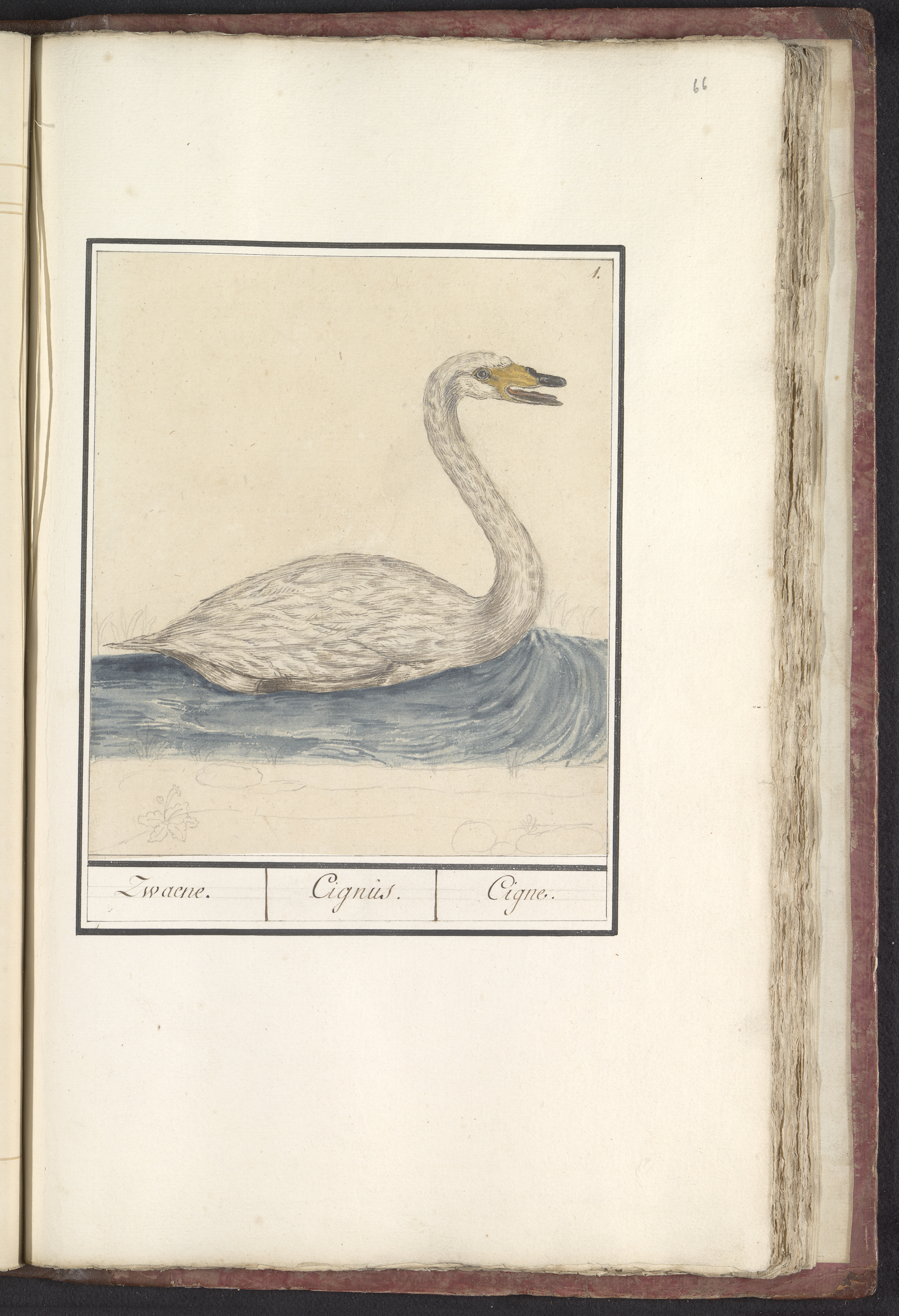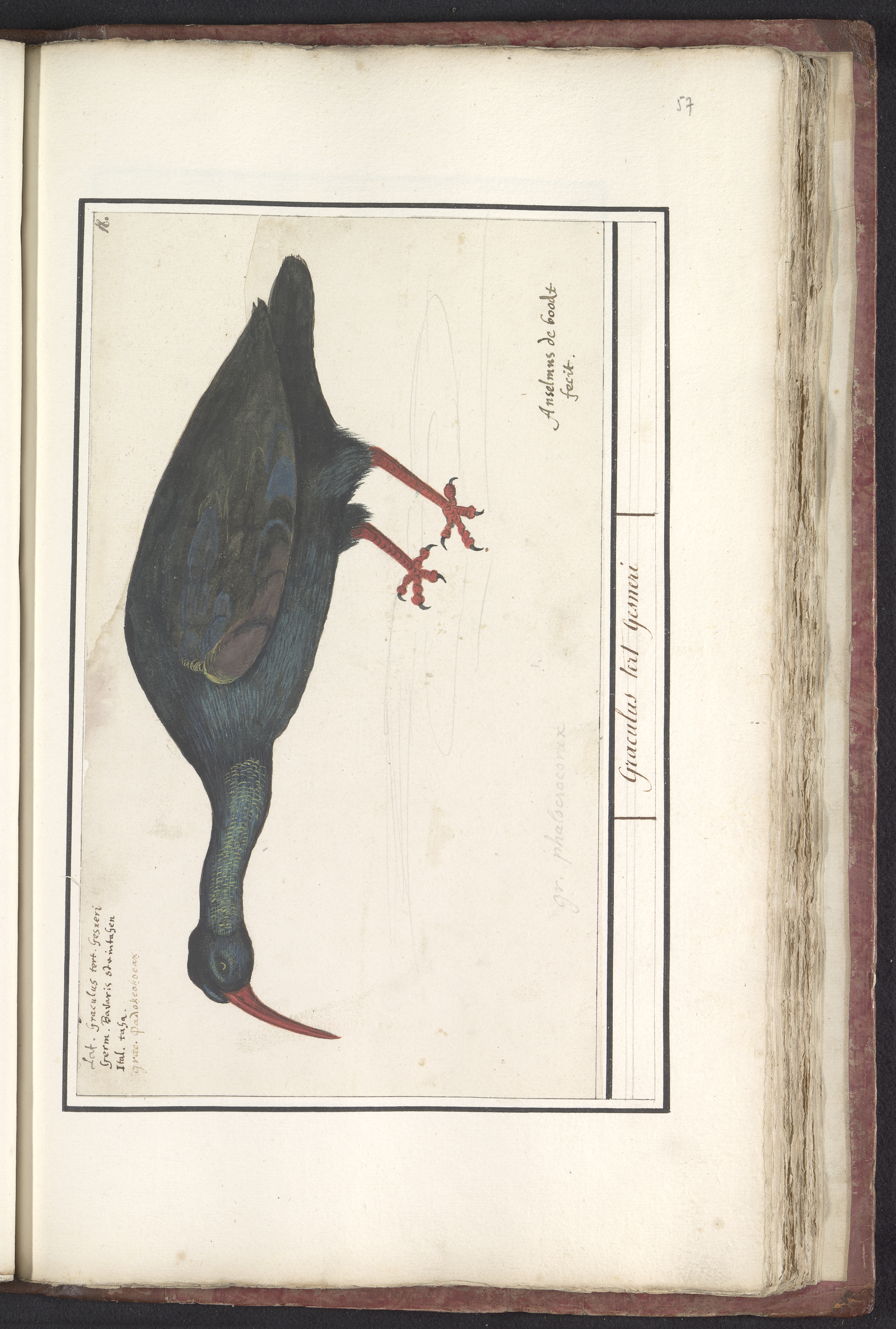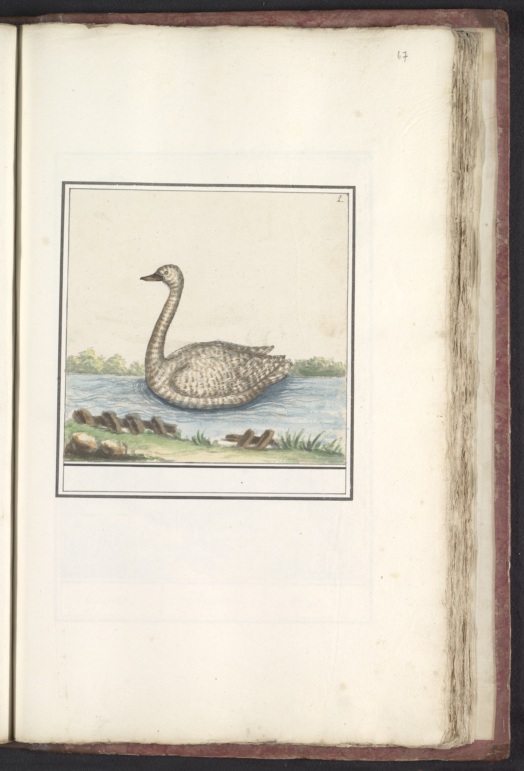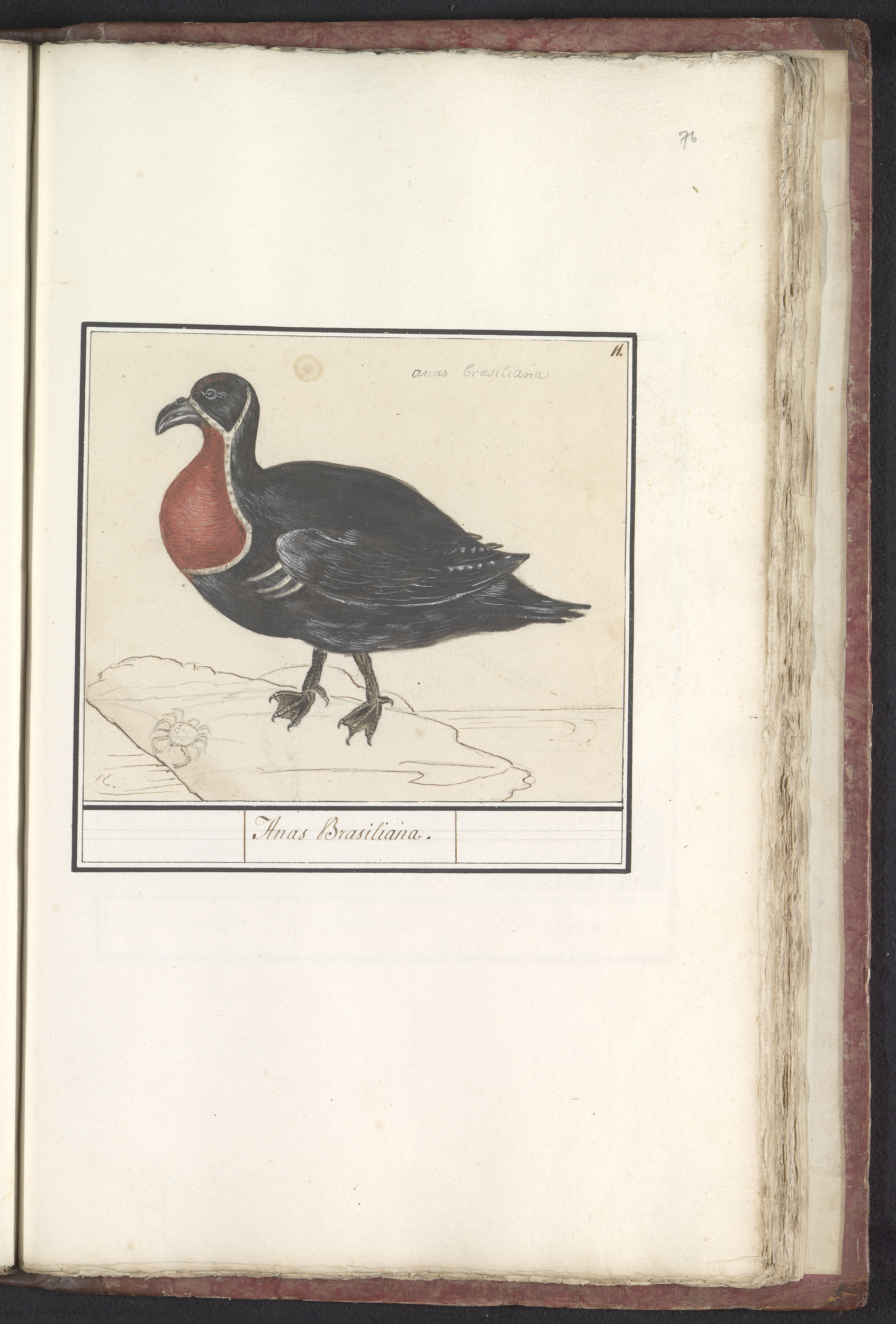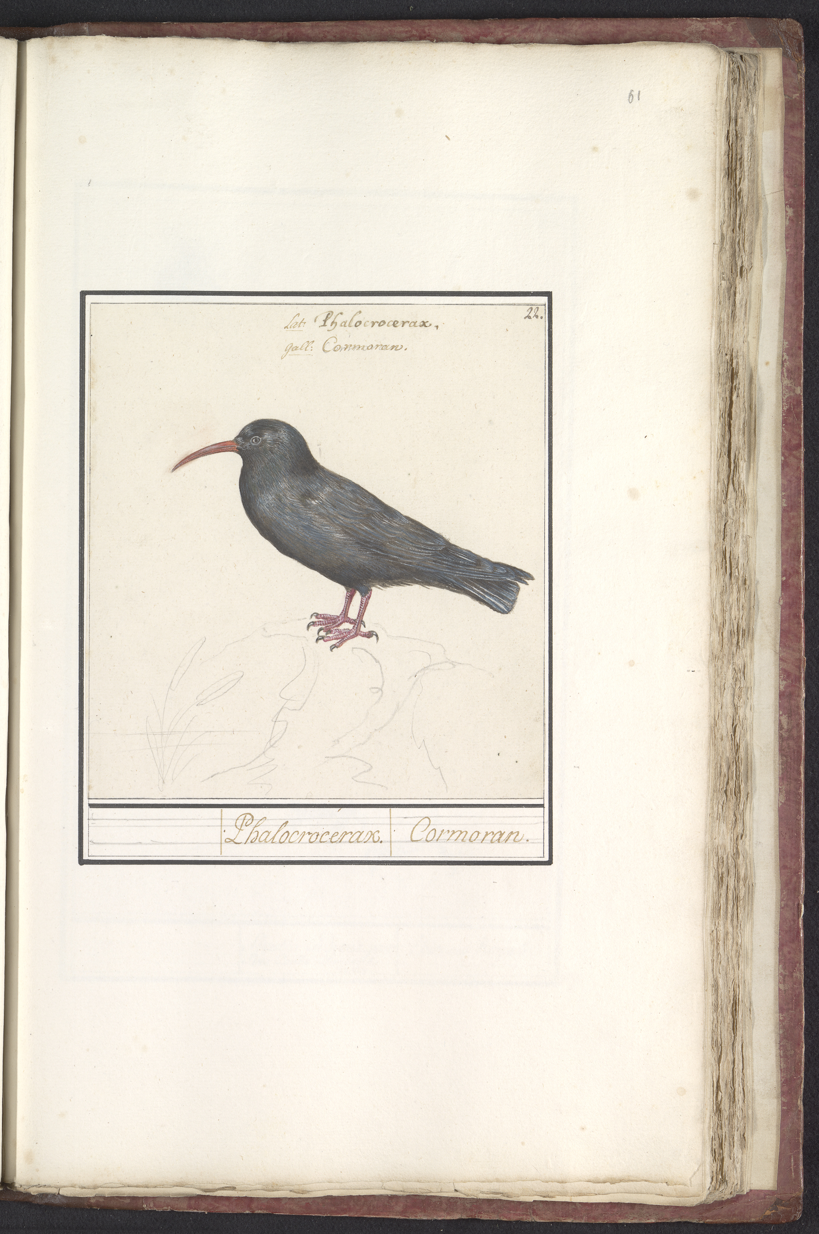 Blad met vier eenden (Anas) en een aalscholver (Phal...