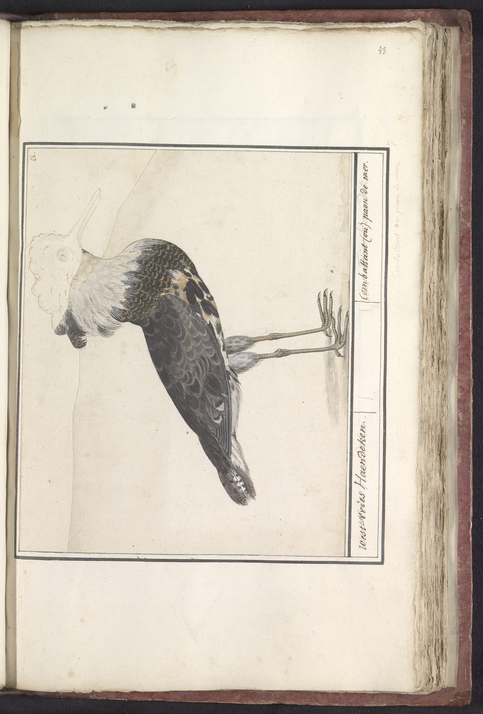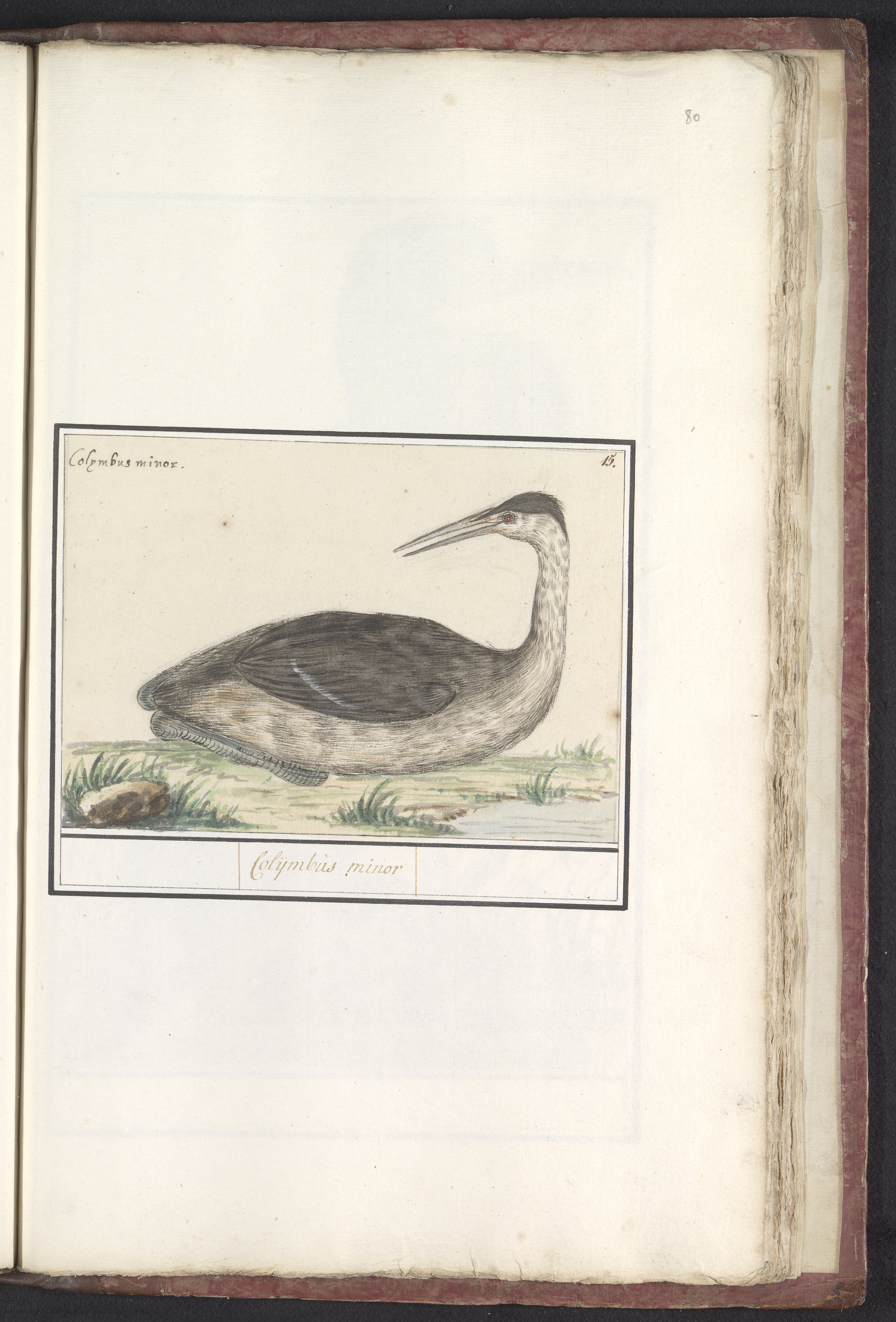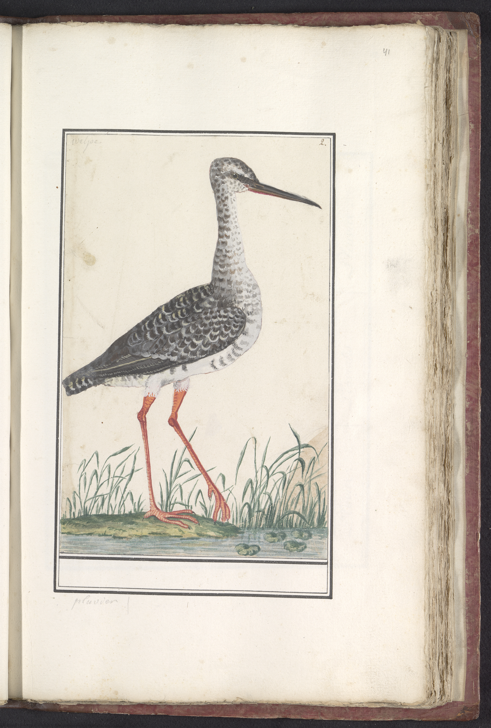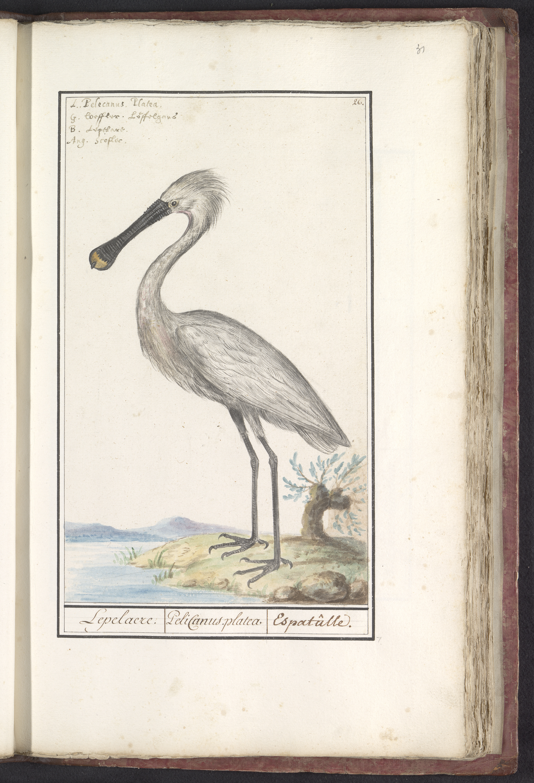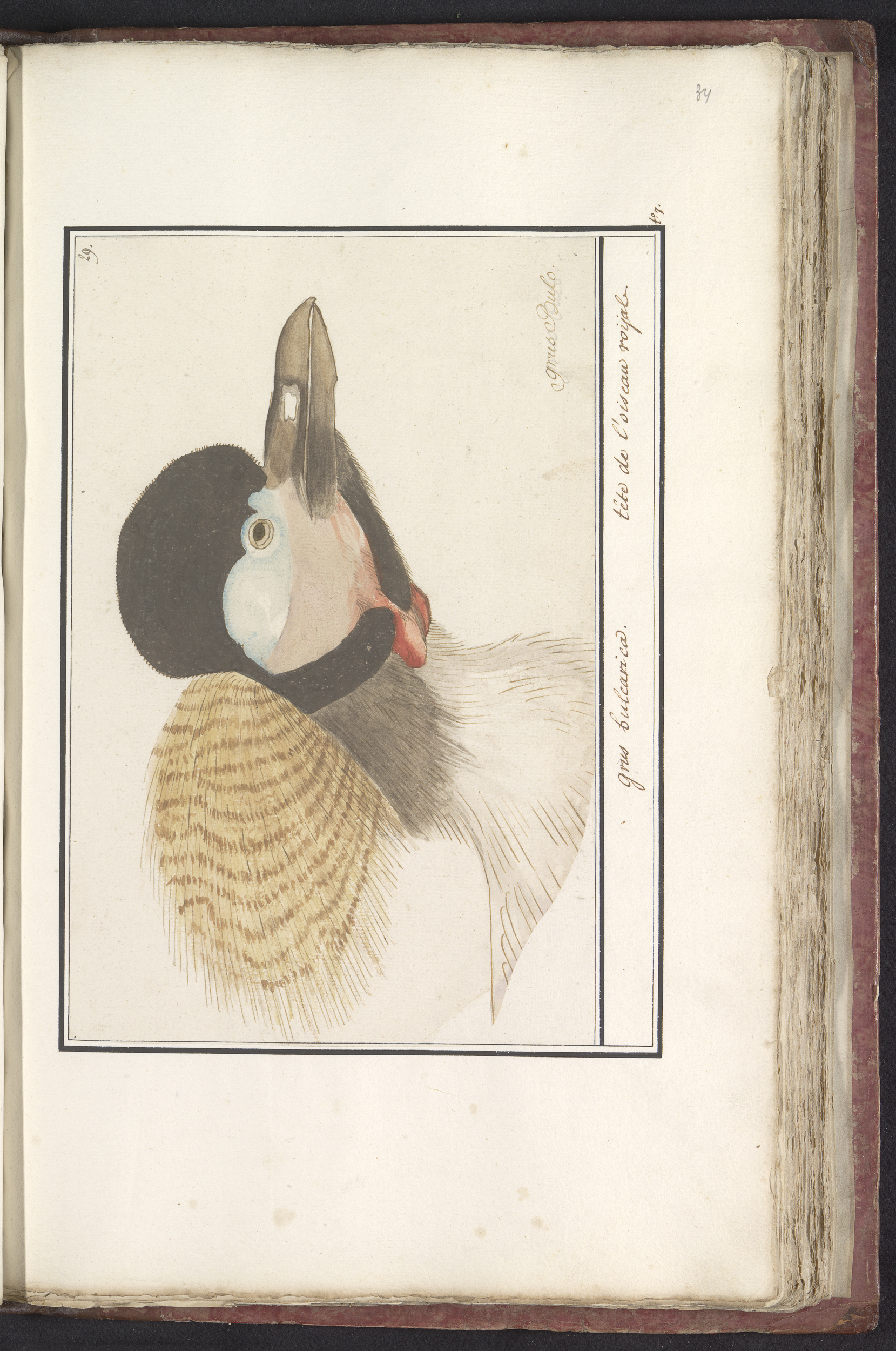 Blad met vier eenden (Anas) en een aalscholver (Phal...