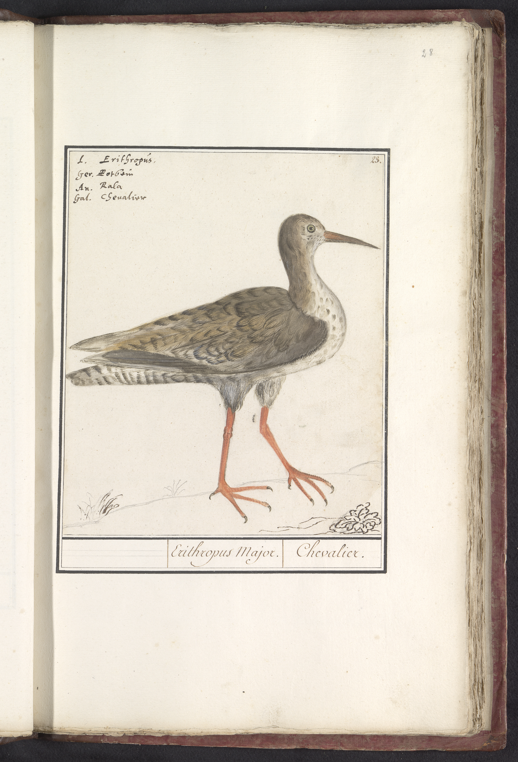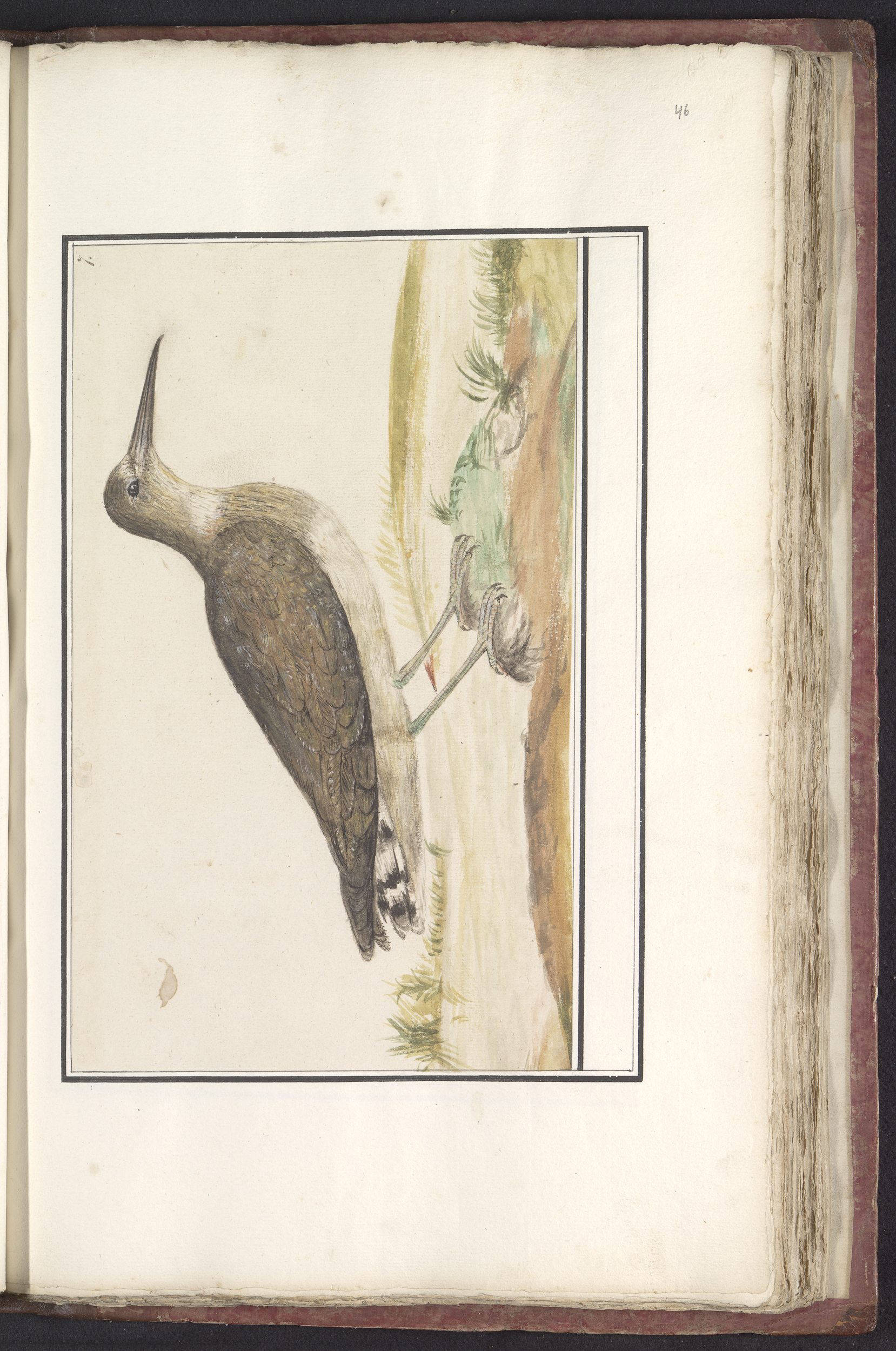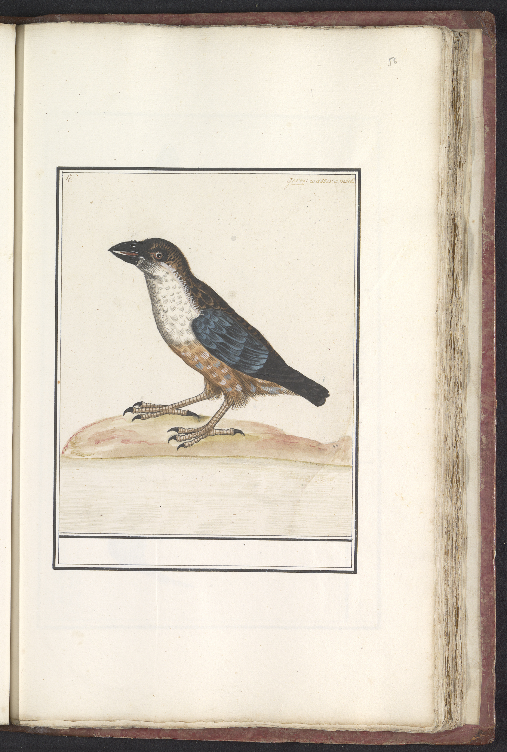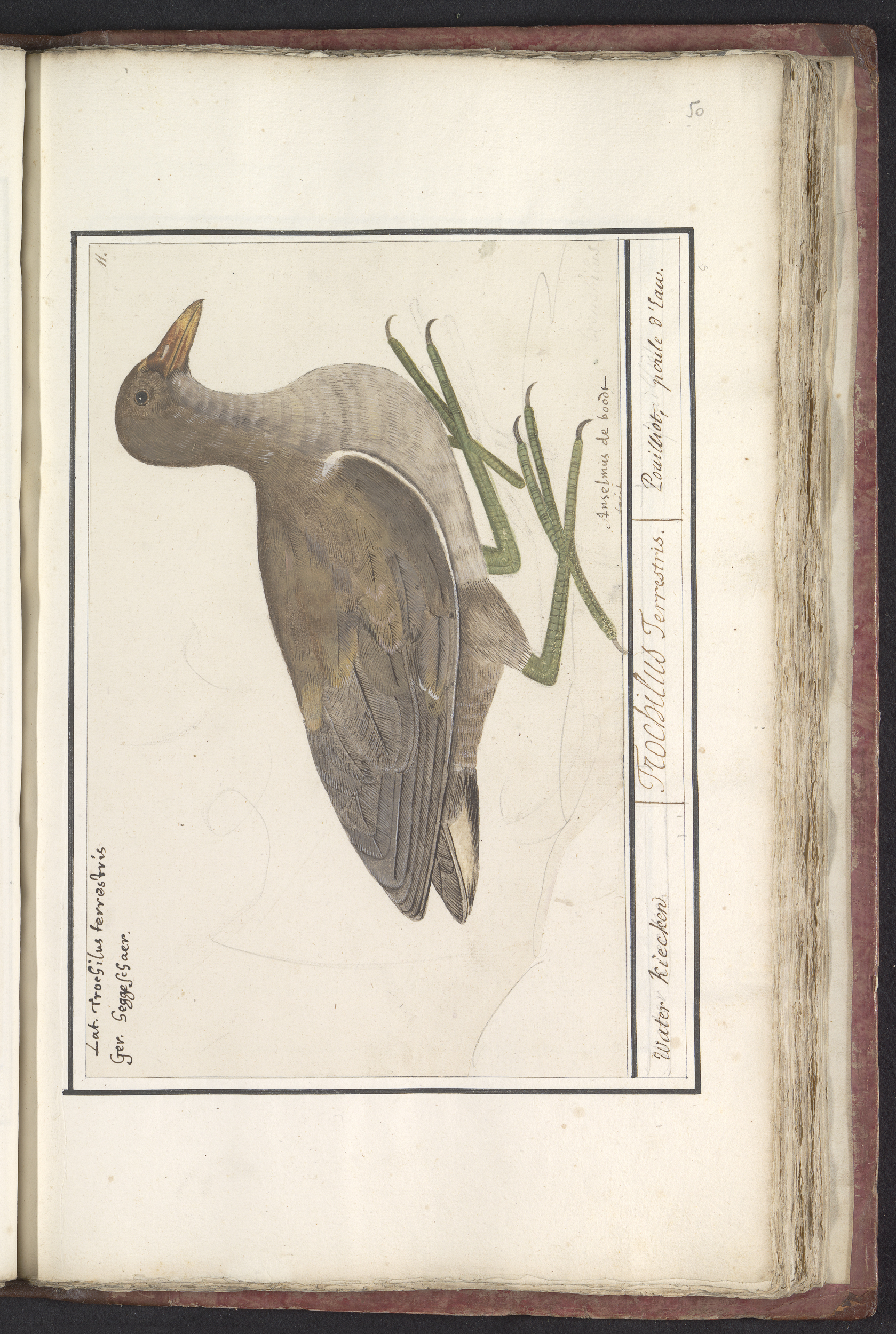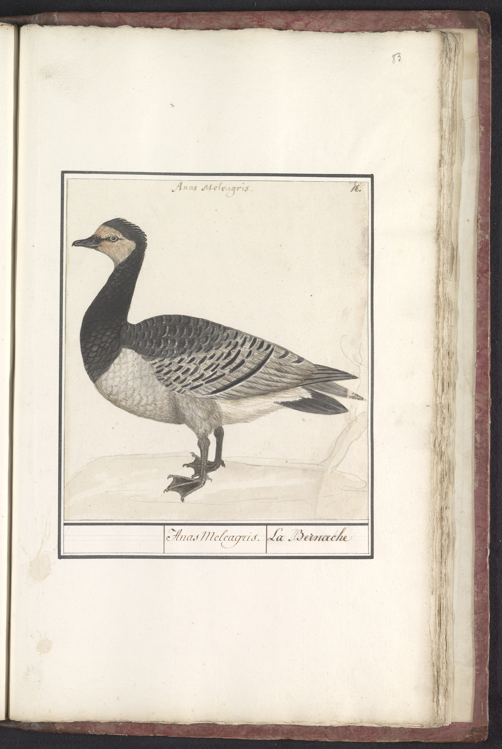 Blad met vier eenden (Anas) en een aalscholver (Phal...