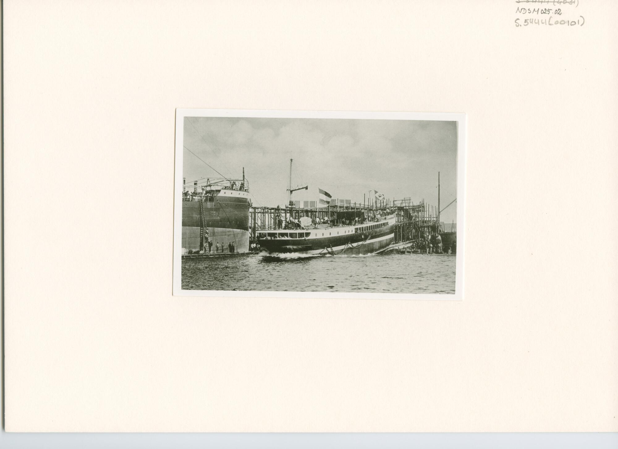 Foto van de tewaterlating van het vrachtschip ss. Va...