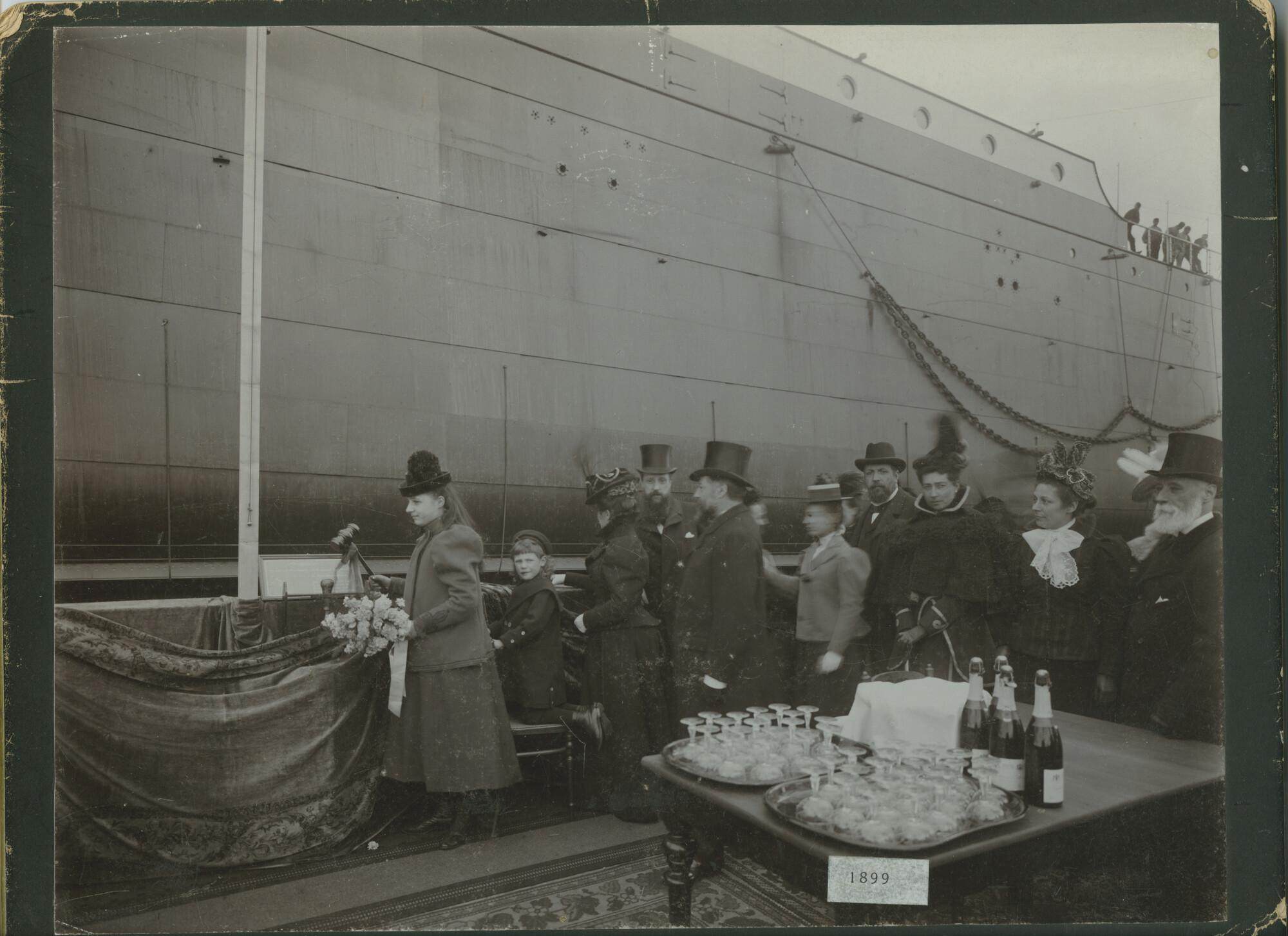 Foto van de tewaterlating van het vrachtschip ss. So...