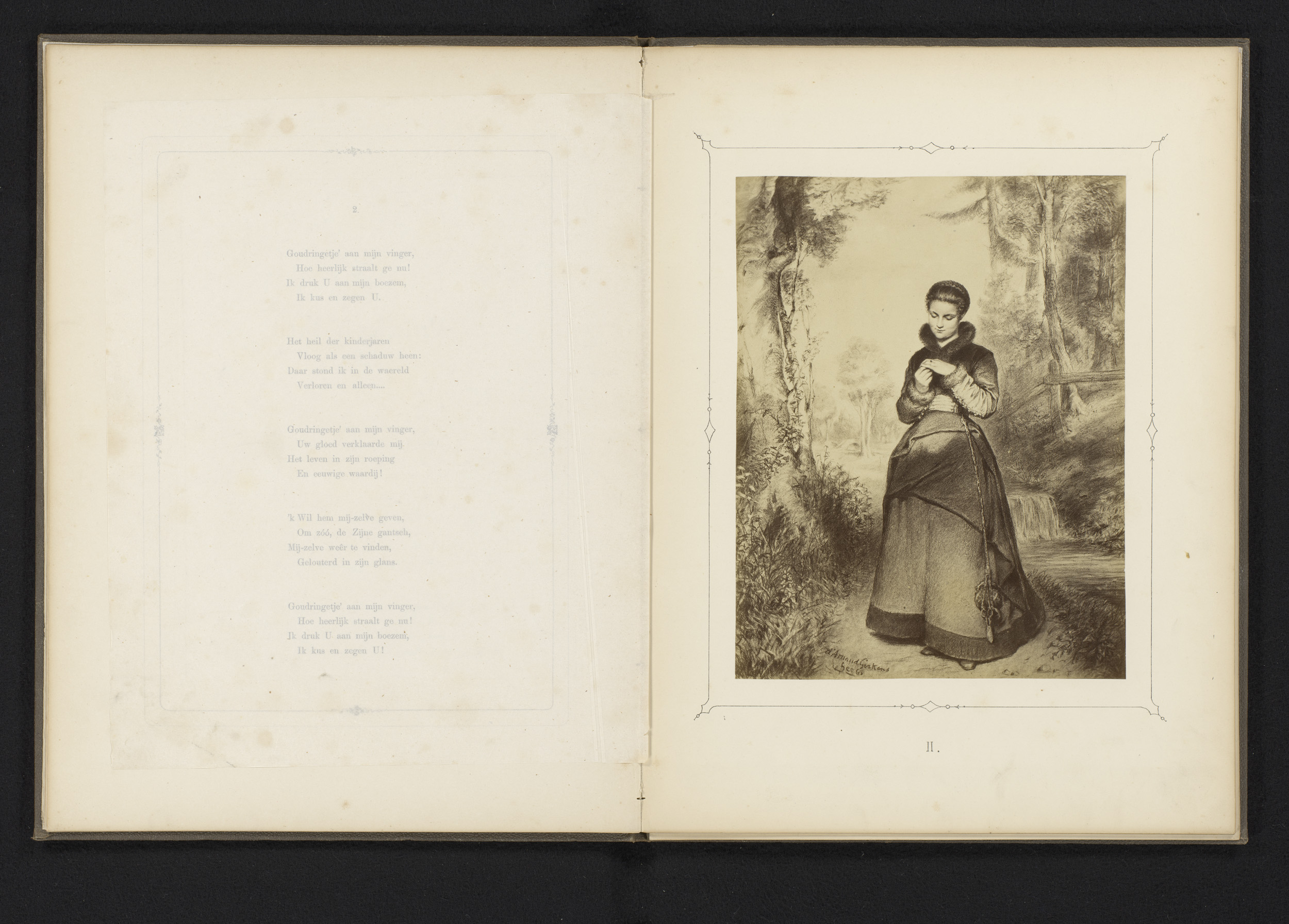 Reproductie van een gomdruk van een steeg in de Ritt...