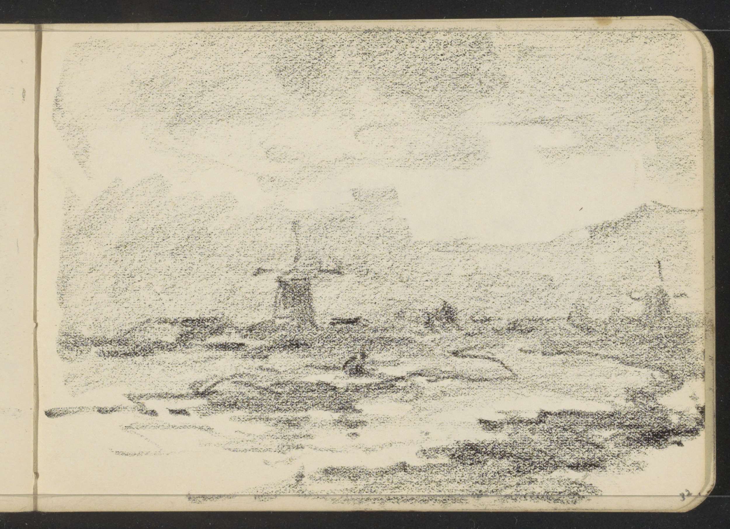 Landschap met een toren op een heuvel