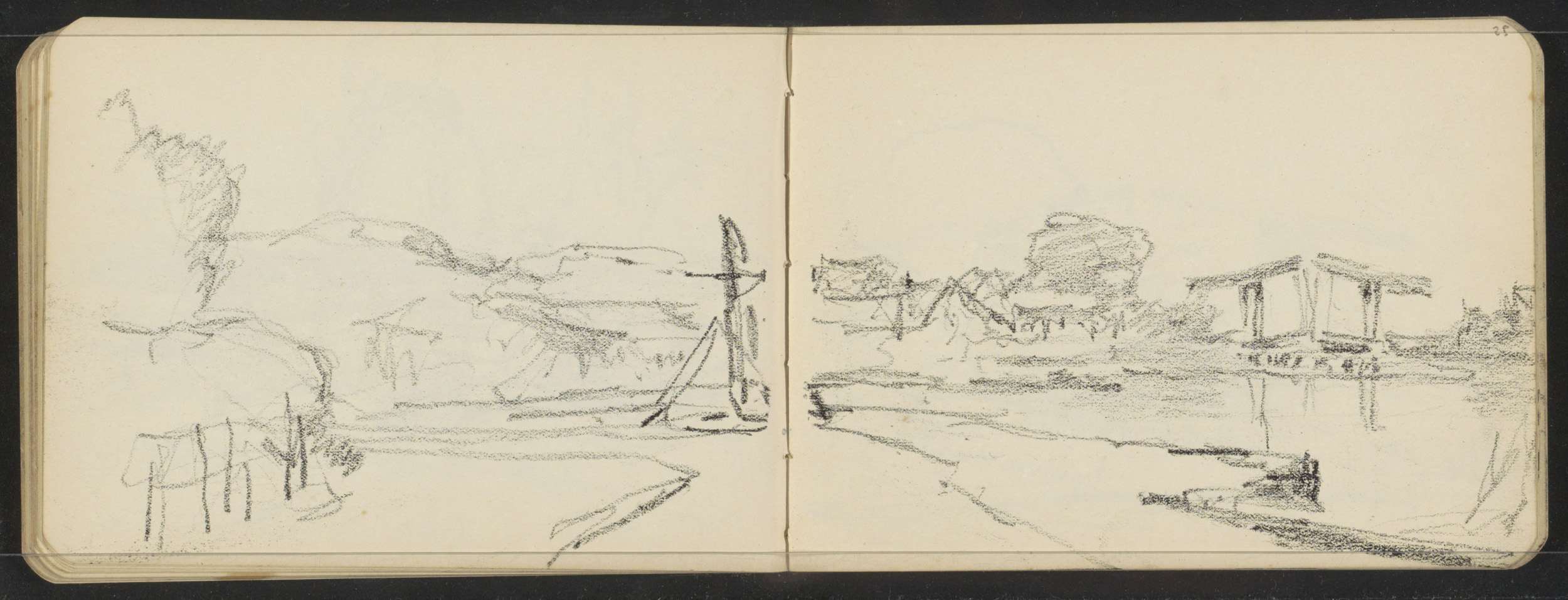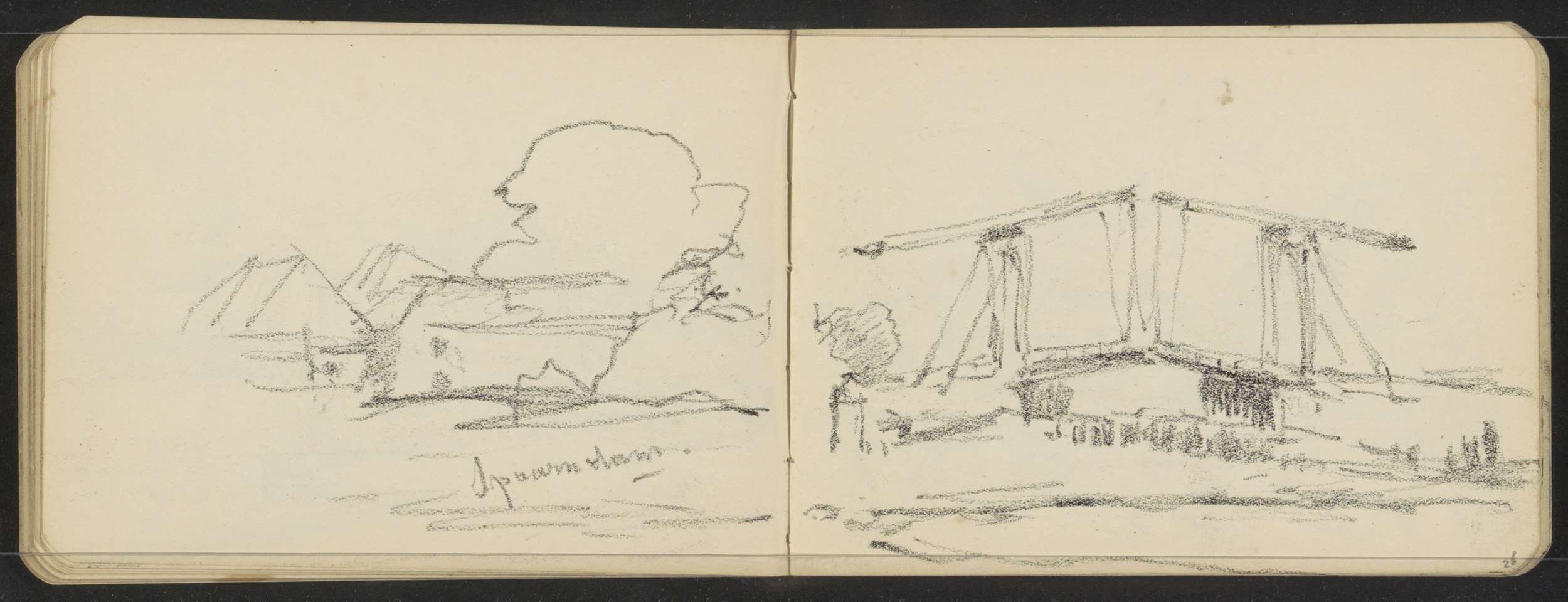 Landschap met een ophaalbrug over het water