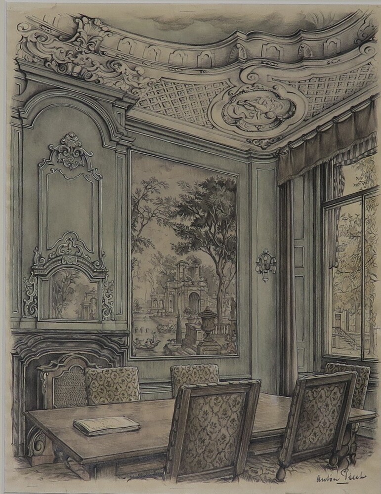 Rijk versierde kamer, kalenderplaat Amsterdam, Heren...