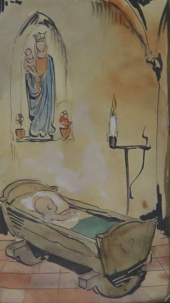 Voorstudie geboortekaartje Maria met het kindje Jezus