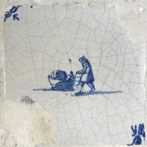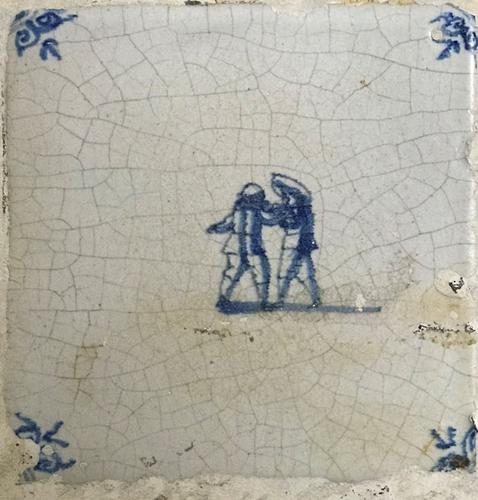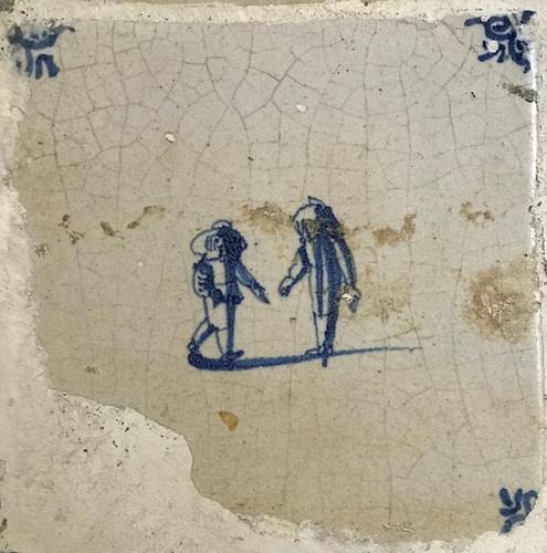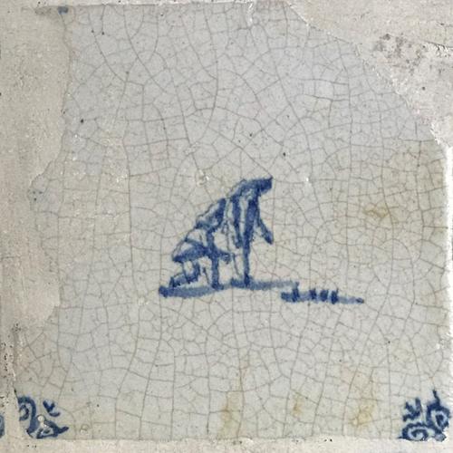 Tegel van aardewerk met tinglazuur voorstellende sch...