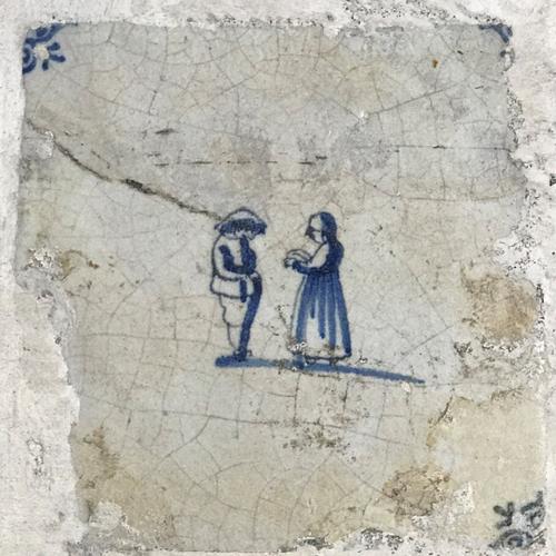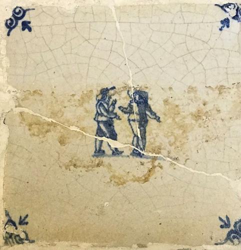 Tegel van aardewerk met tinglazuur voorstellende gev...