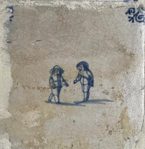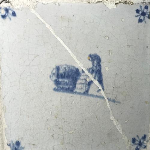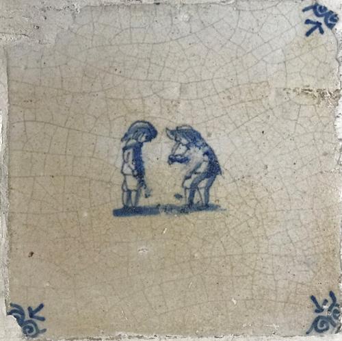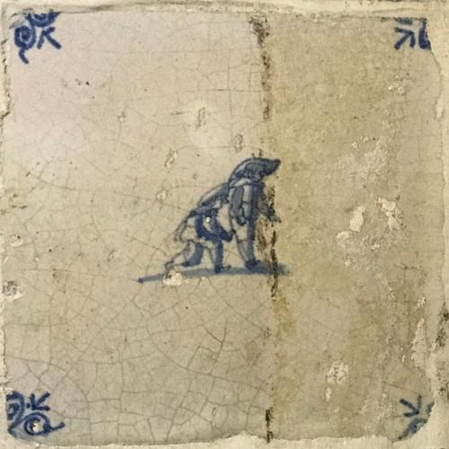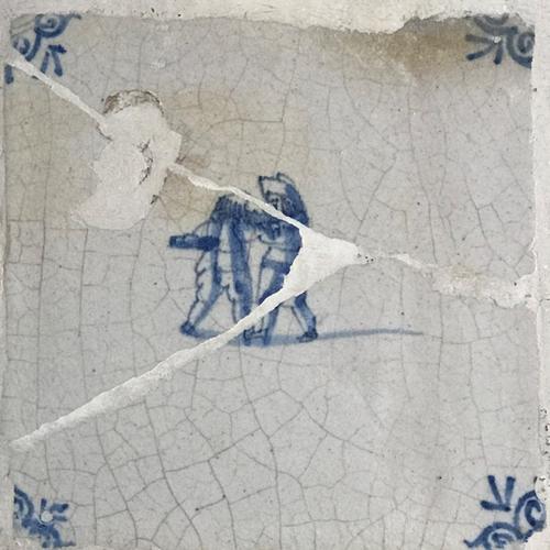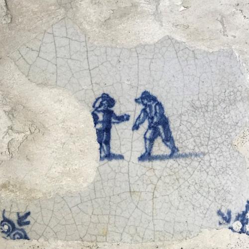 Tegel van aardewerk met tinglazuur voorstellende ?- ...