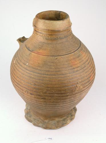 Kan of kruik met radstempel, 13e of 14e eeuws Rijnla...