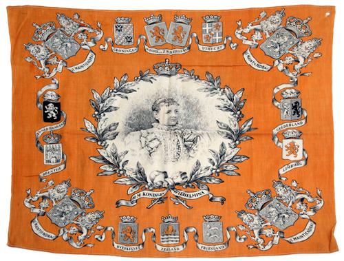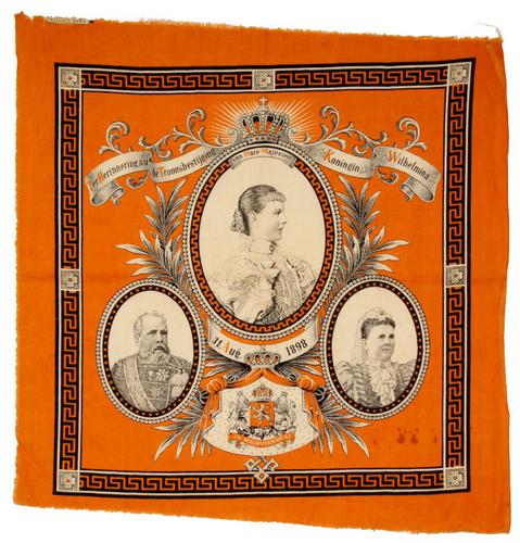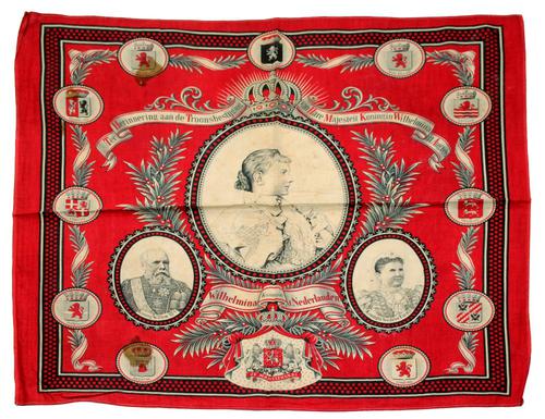 Historisch gedenkdoek Koningin Wilhelmina. Troonsbe...