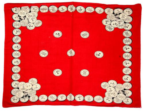 Katoenen rode zakdoek, met opdruk van rijksdaalders ...