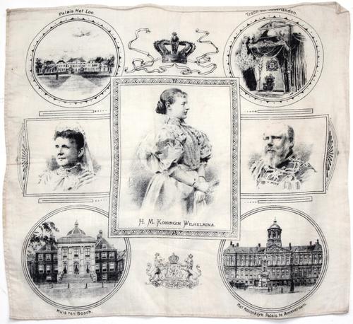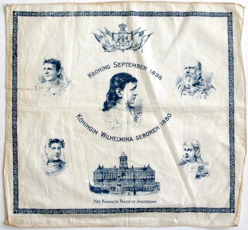 Gedenkdoek, katoen inhuldiging van koningin Wilhelmi...