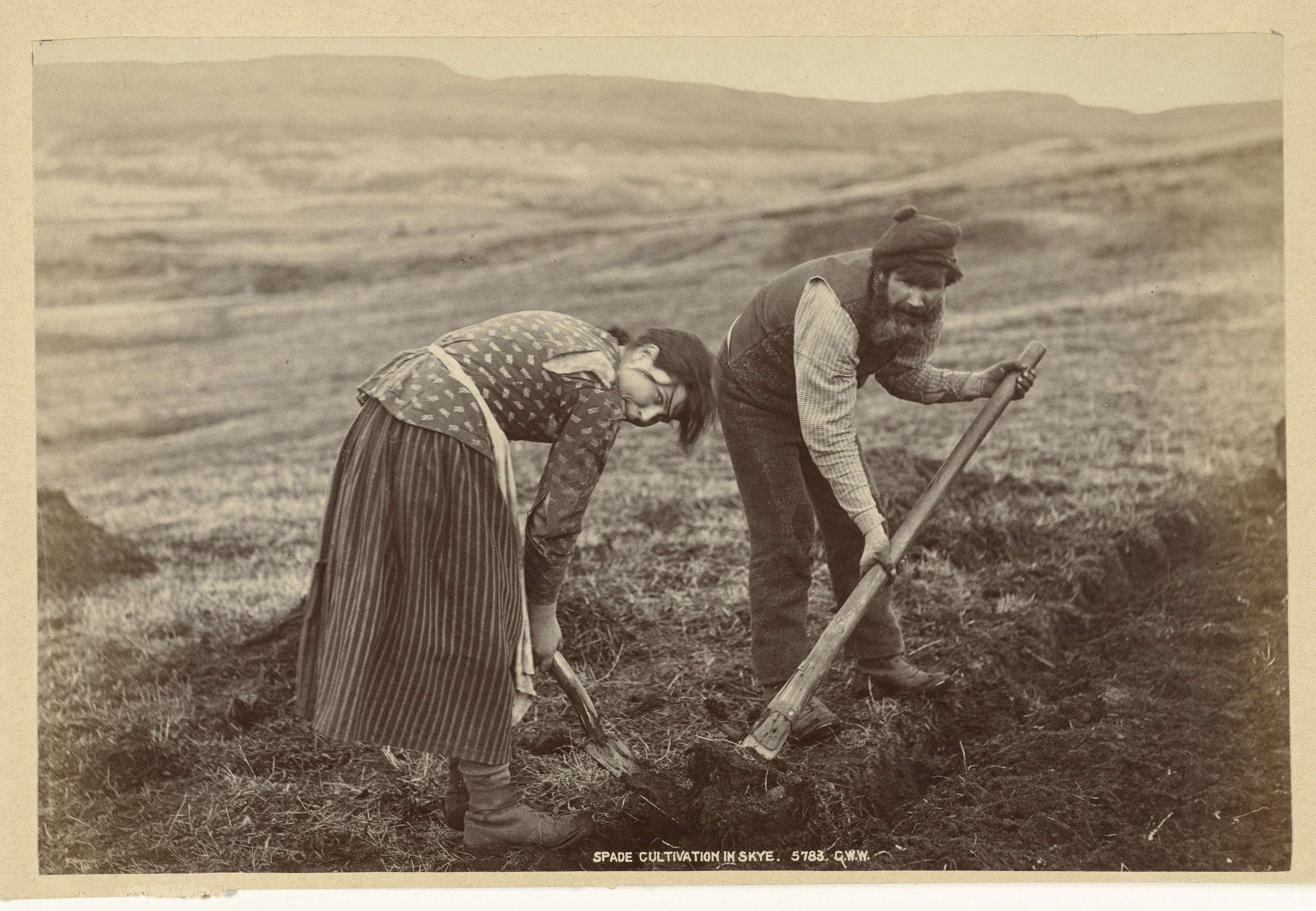 Werkers op een land op Skye