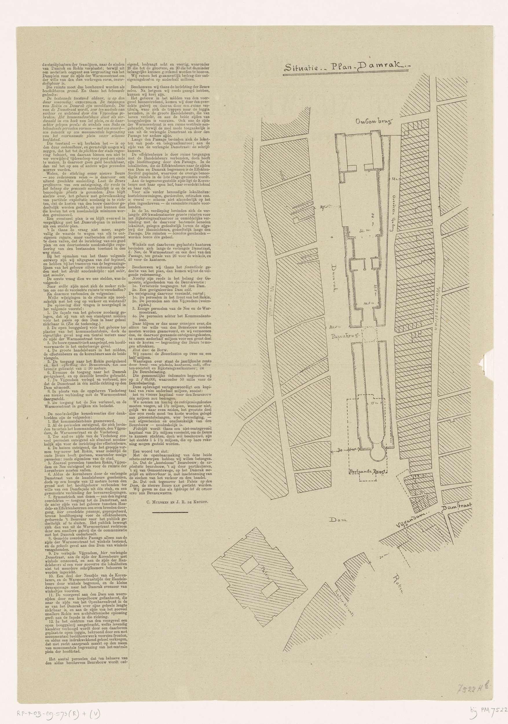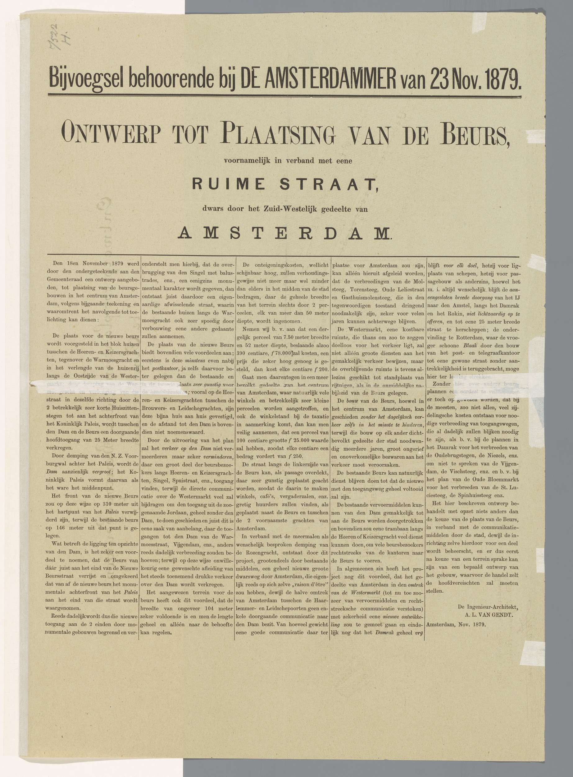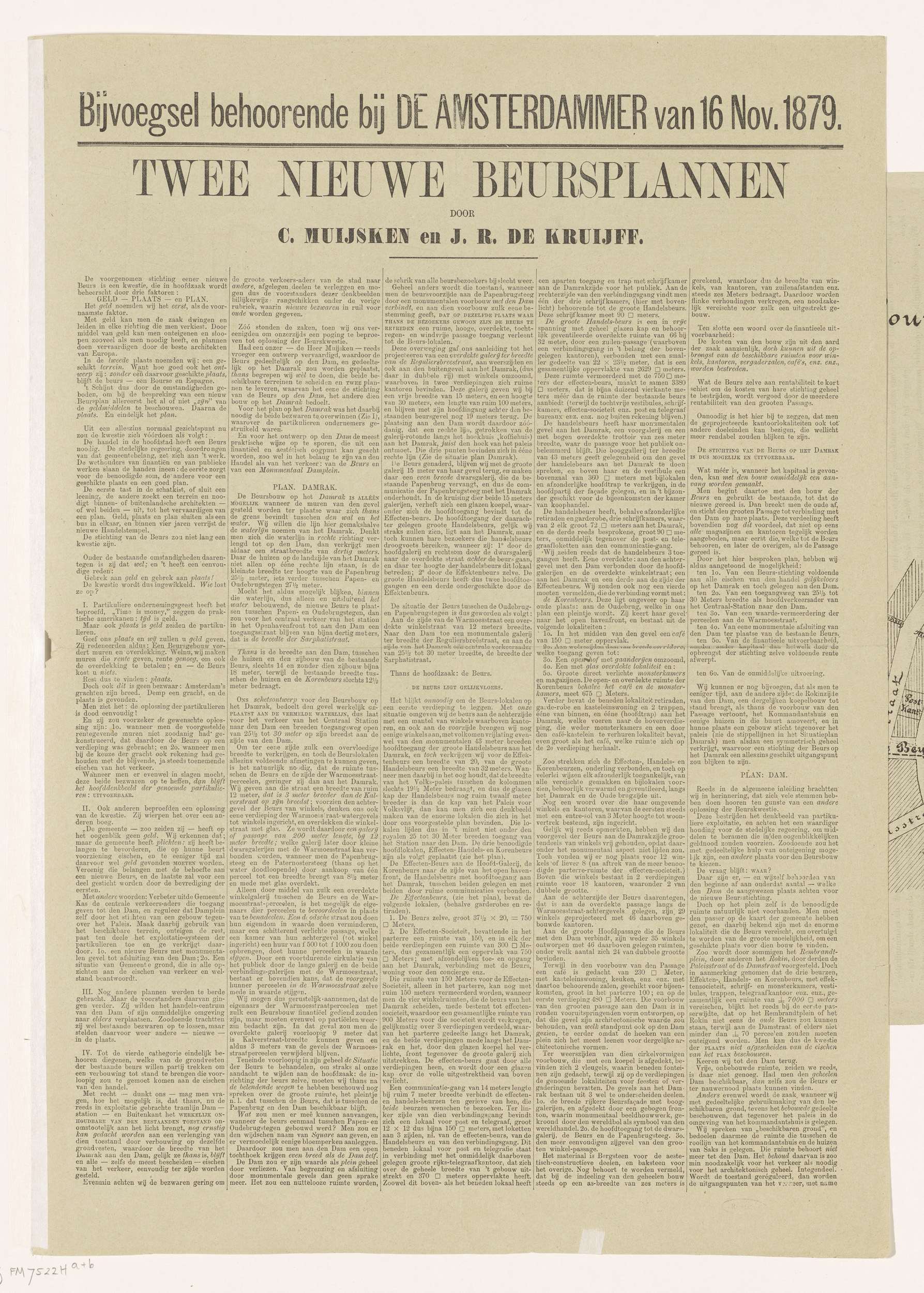 Plan voor een nieuw beursgebouw aan het Damrak, 1879
