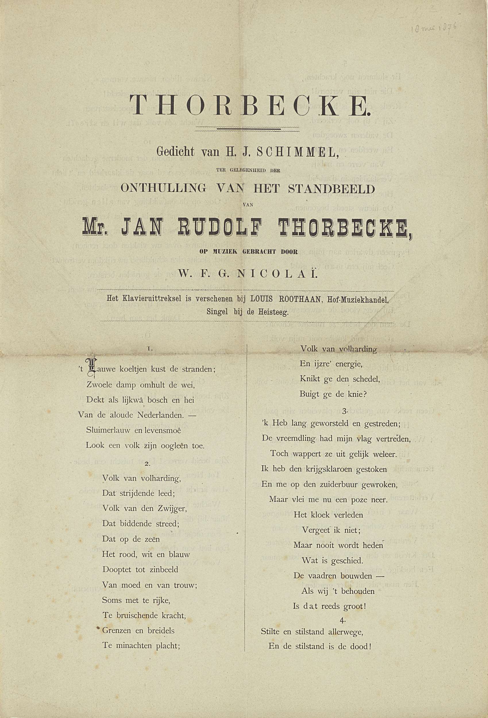 Ter gedachtenis aan 1 april 1872. Een lithogram, ont...