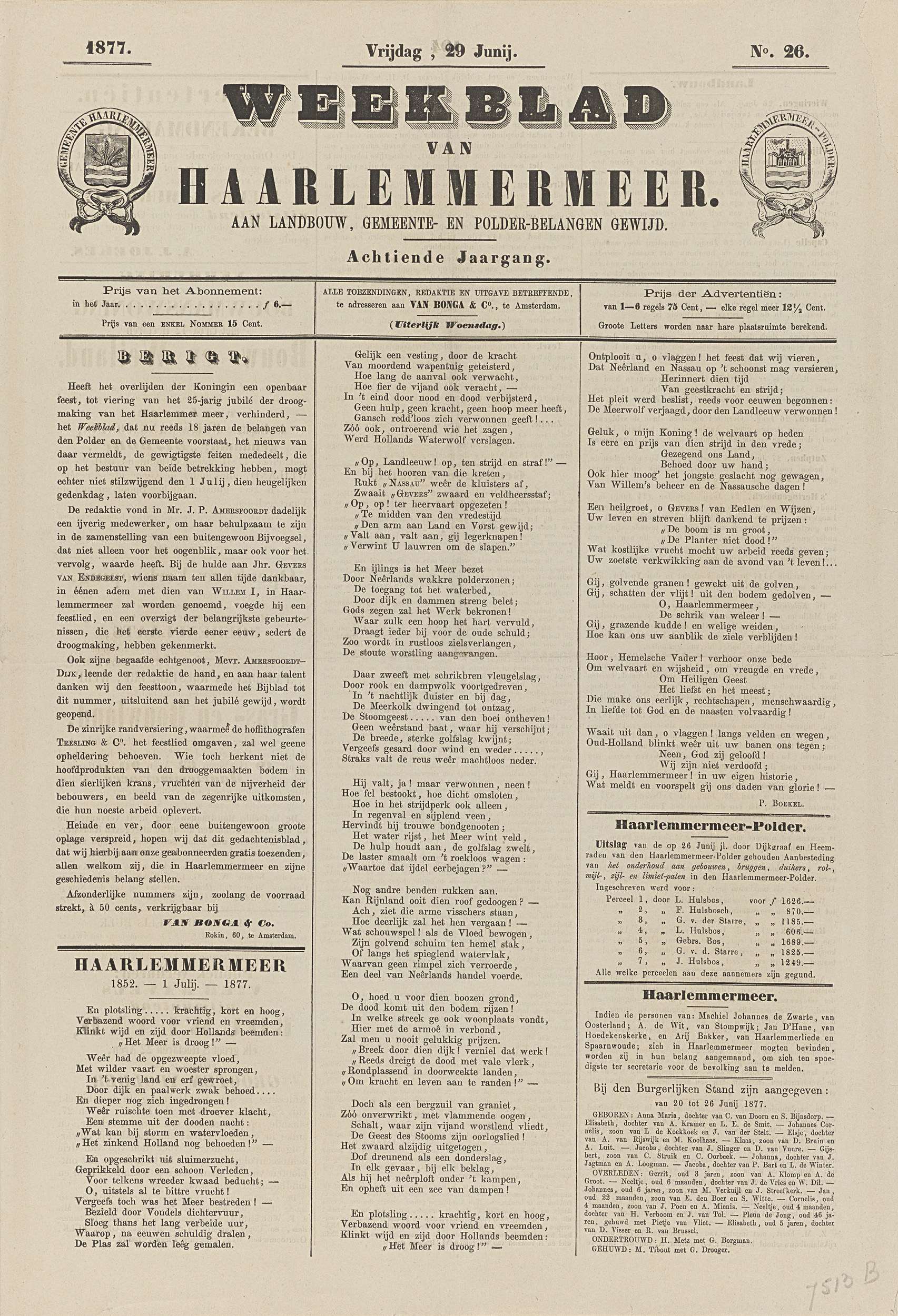 Weekblad van Haarlemmermeer. Aan landbouw, gemeente-...