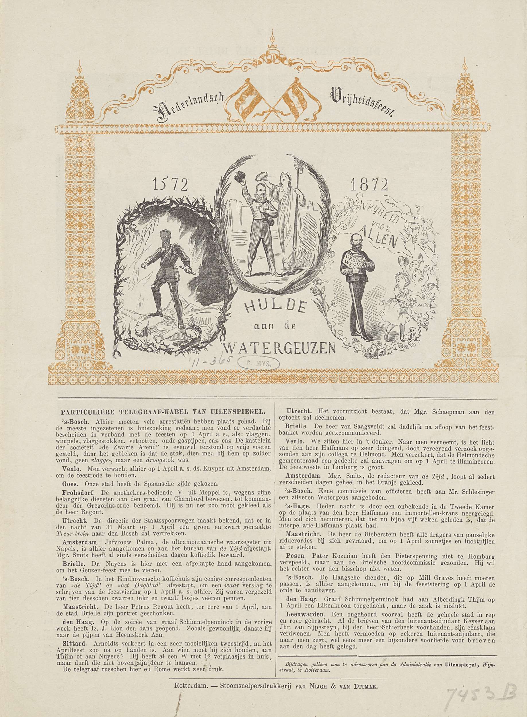Nederlandsch Vrijheidsfeest. 1571 1872 Hulde aan de ...