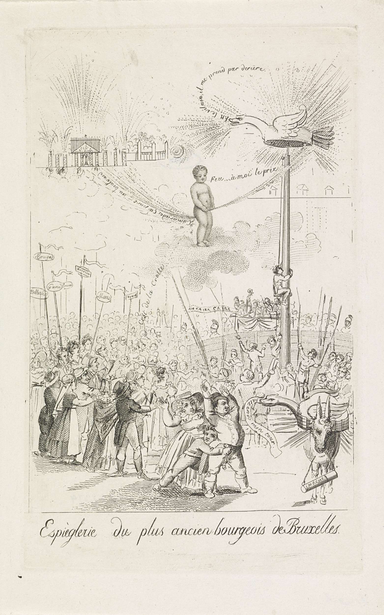 Spotprent op de mislukte ballonvaart te Gent, 1820