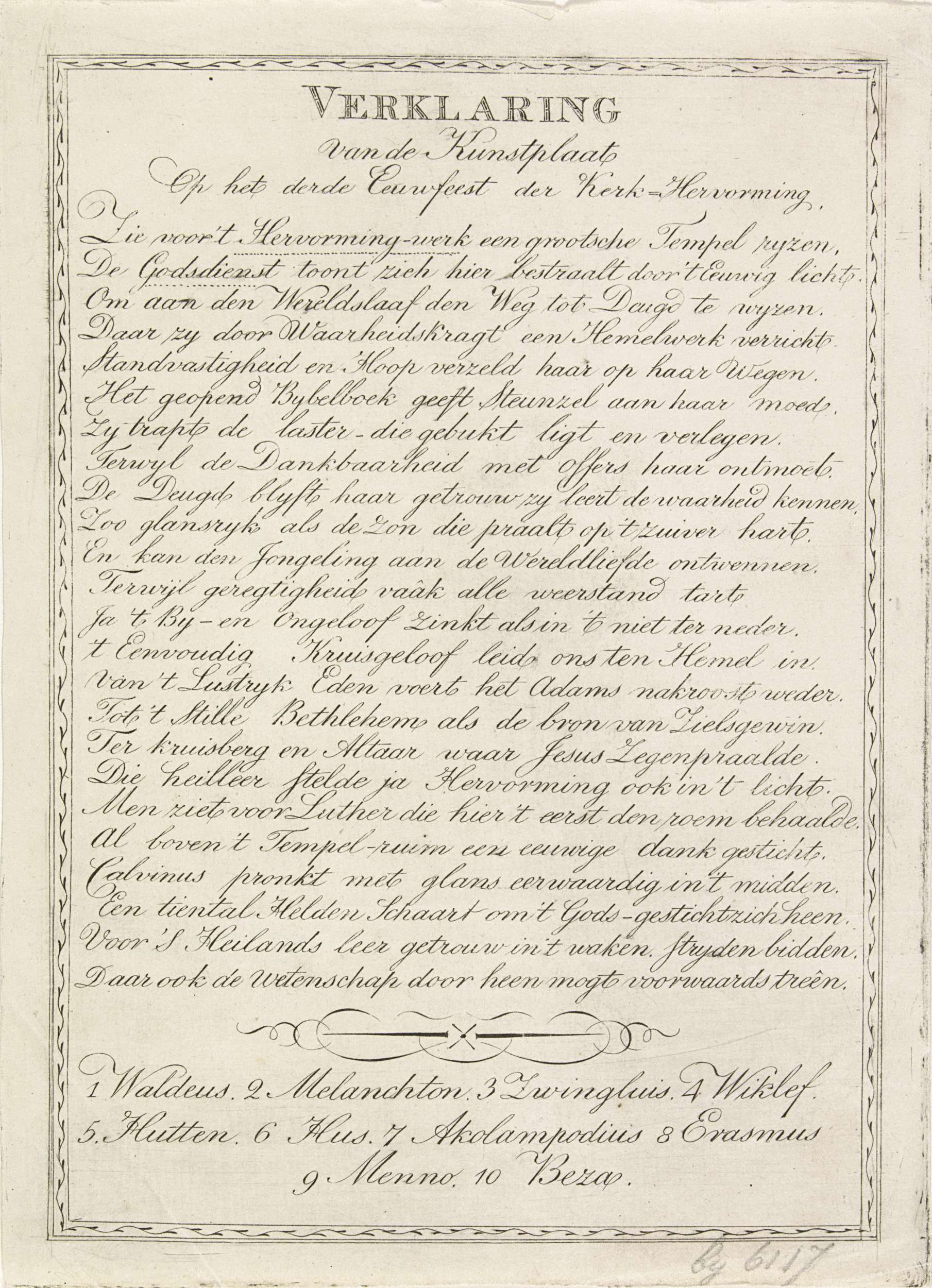 Verklaring bij de prent met het monument voor het de...