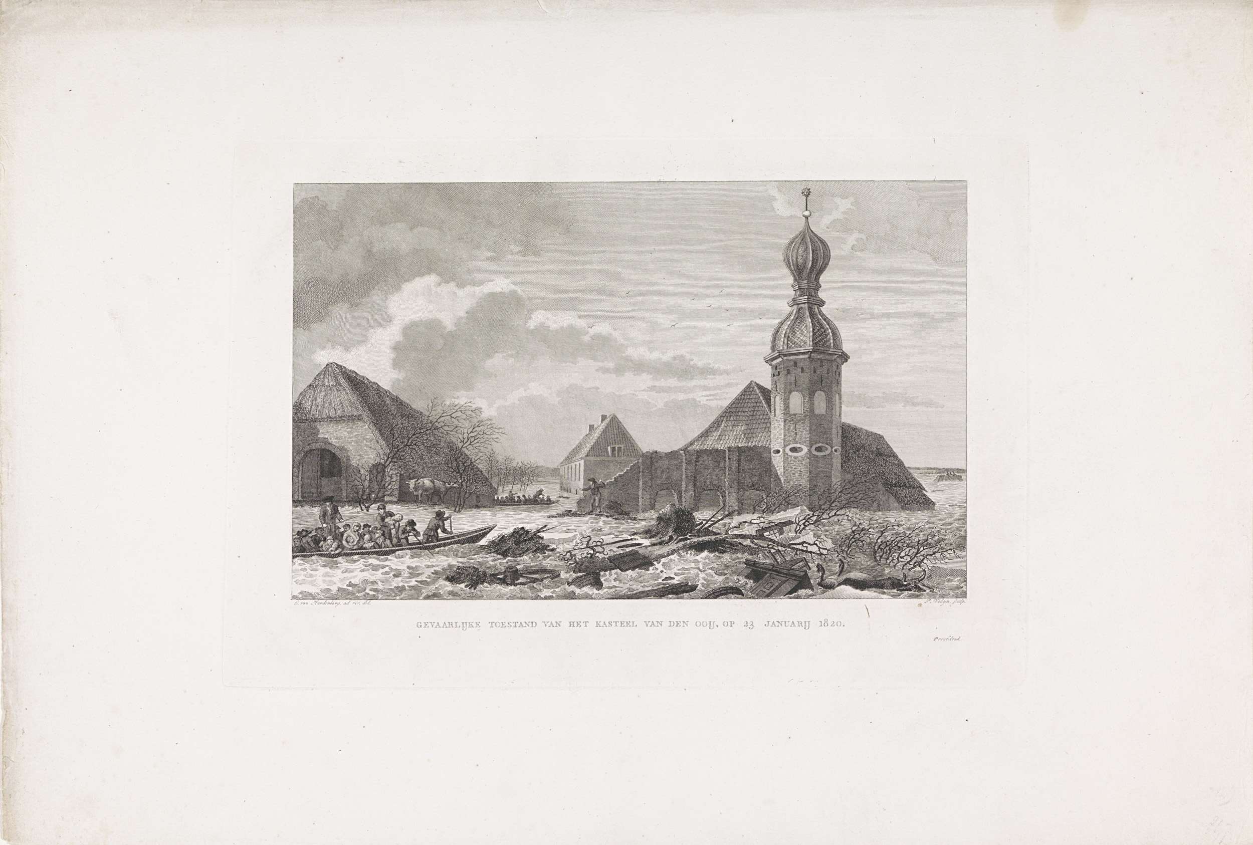 Kasteel van Ooy bedreigd door het water, 1820