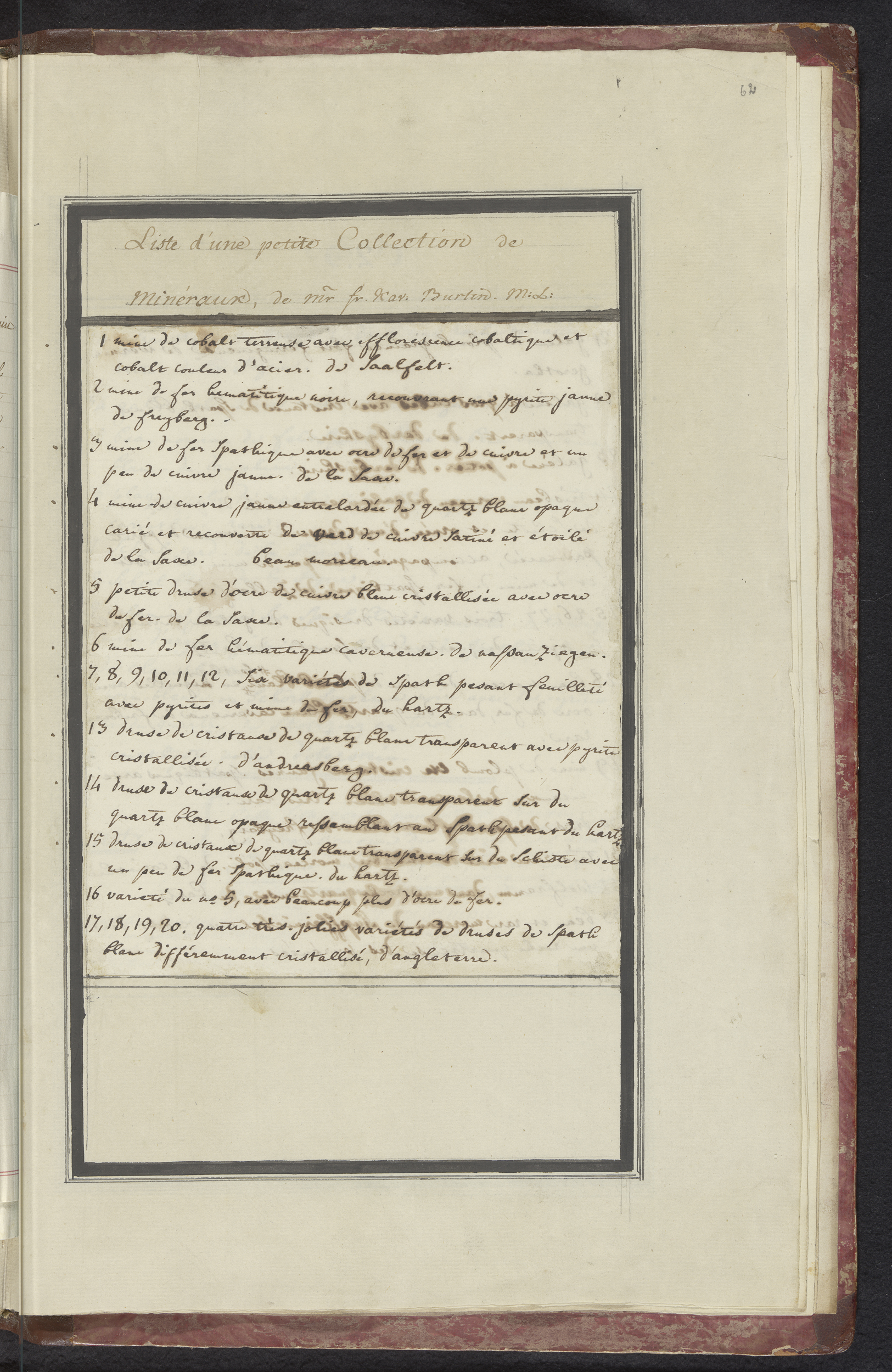 Lijst van mineralen in de collectie Burtin (blad 1)