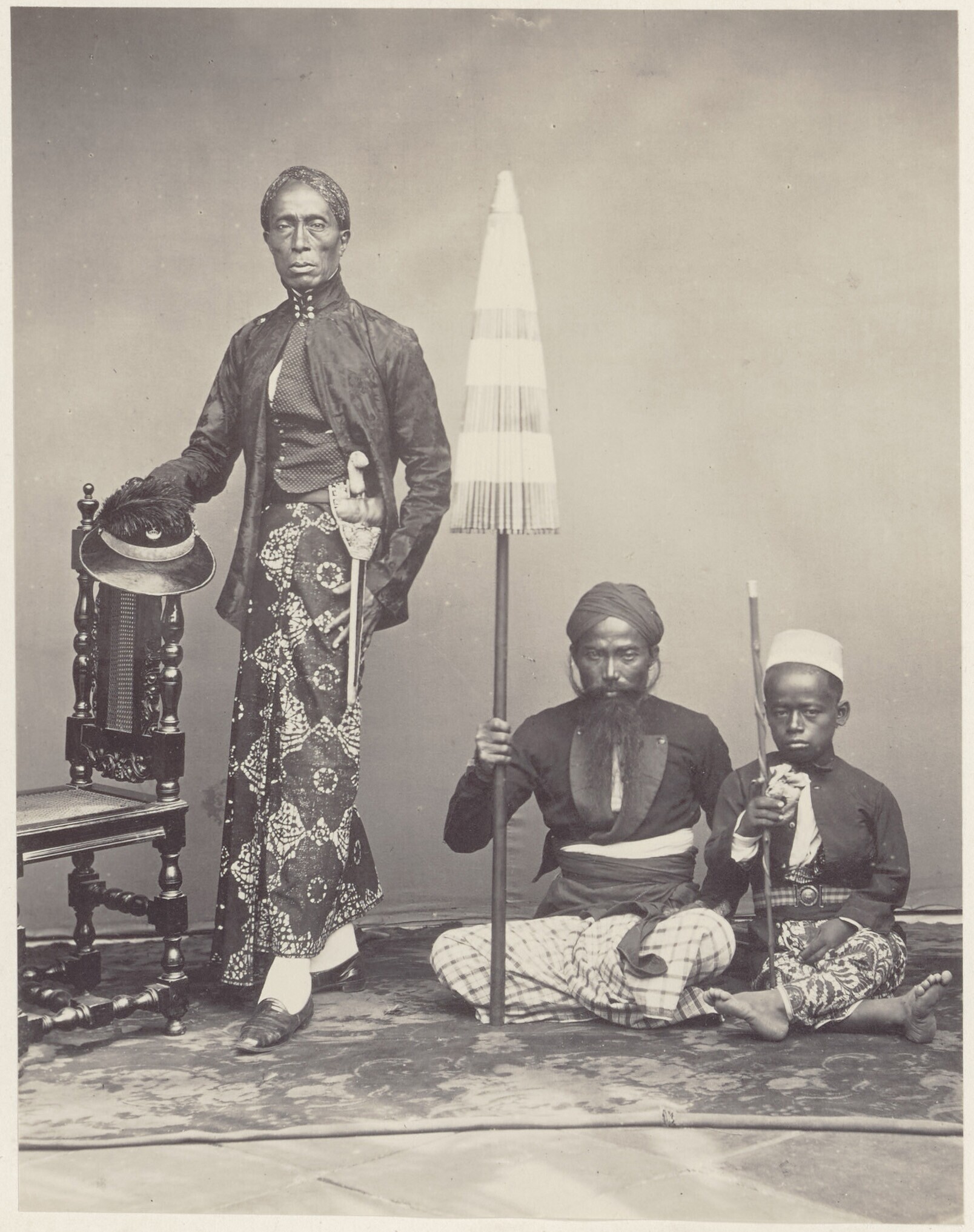 Portret van een Javaanse vorst of notabele met twee ...