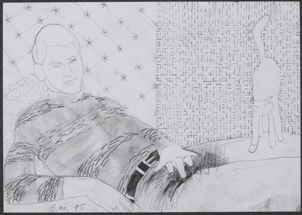 Zonder titel (liggende man met kat)