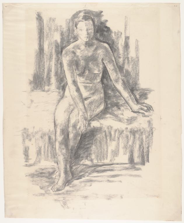 Zittend vrouwelijk naaktmodel