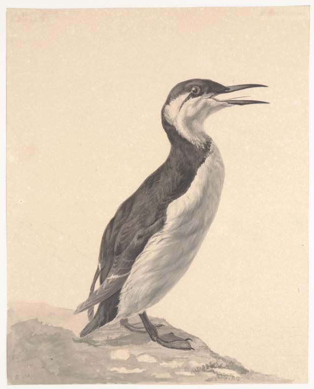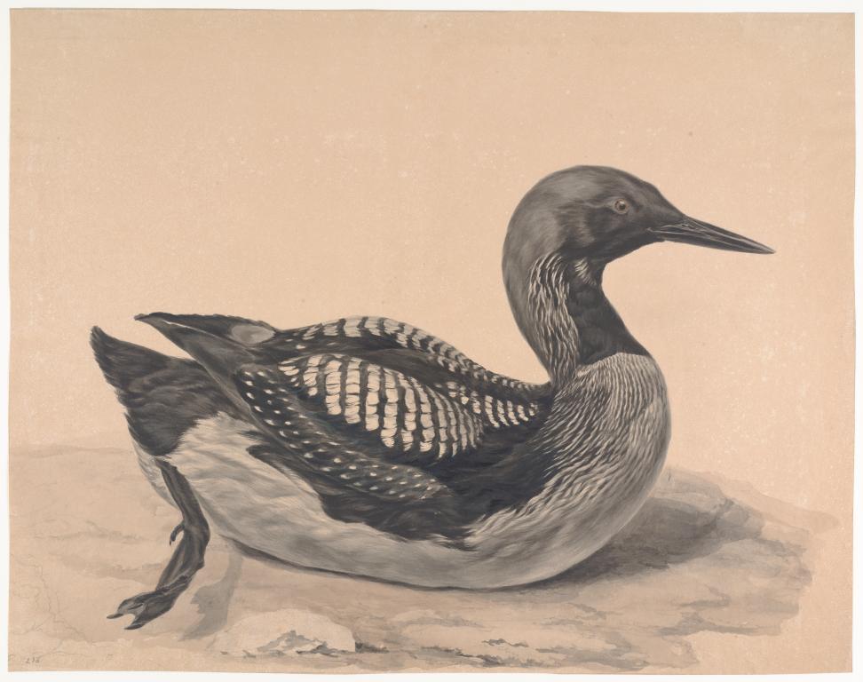 Parelduiker (man) liggend op steen