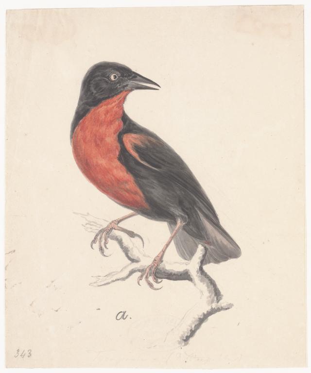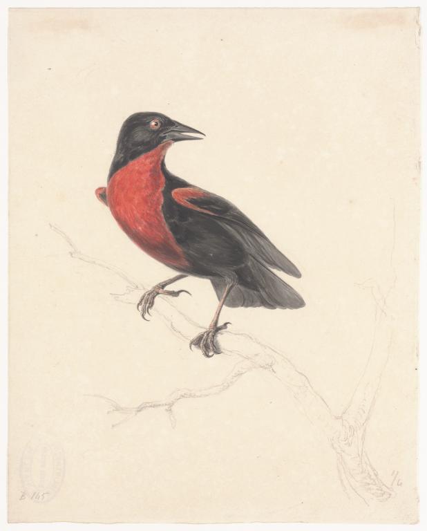 Scharlaken menievogel op tak