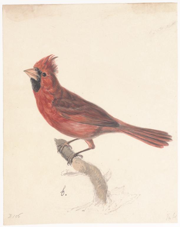 Rode kardinaal op tak (man)