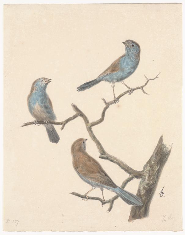 Drie blauwkopblauwfanzantjes op tak