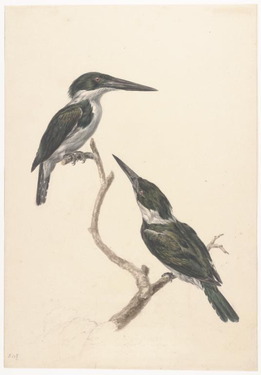 Koppeltje amazone ijsvogels op tak
