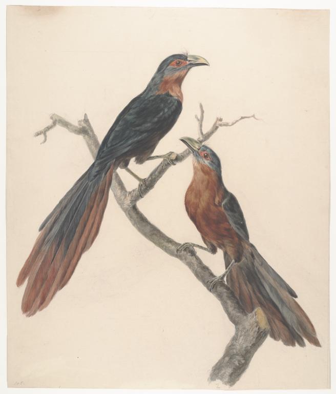 Koppel piet-van-vliets op tak (koppel klaagkoekoeks)