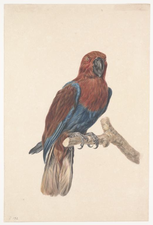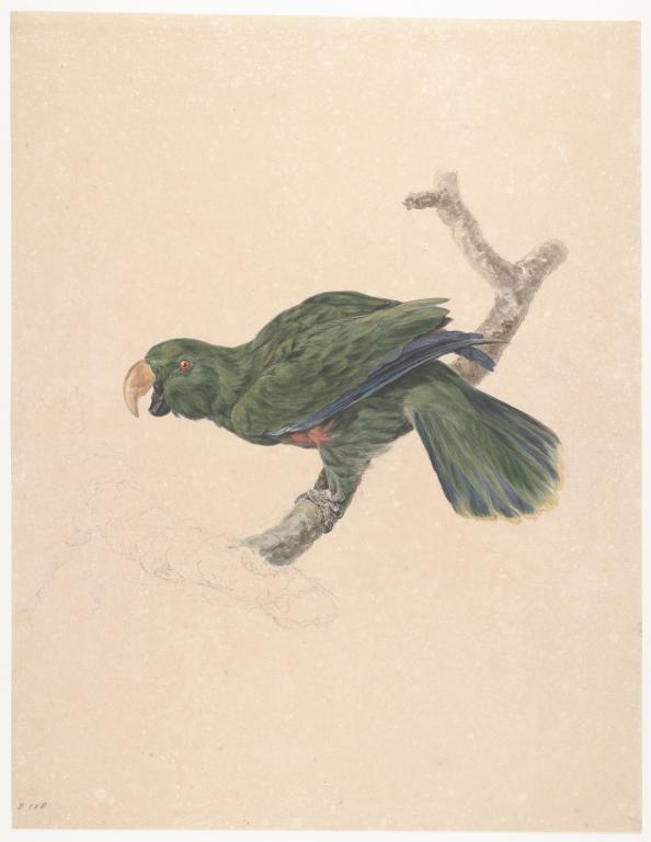 Edelpapegaai op tak (vrouw)