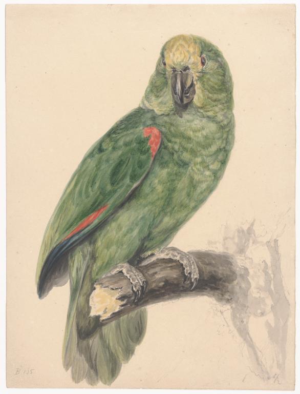 Geelvoorhoofdamazone op tak