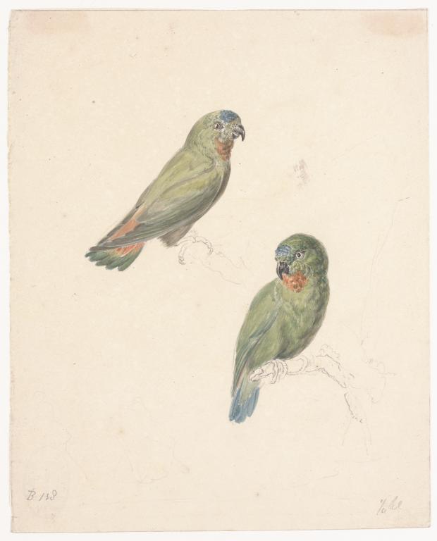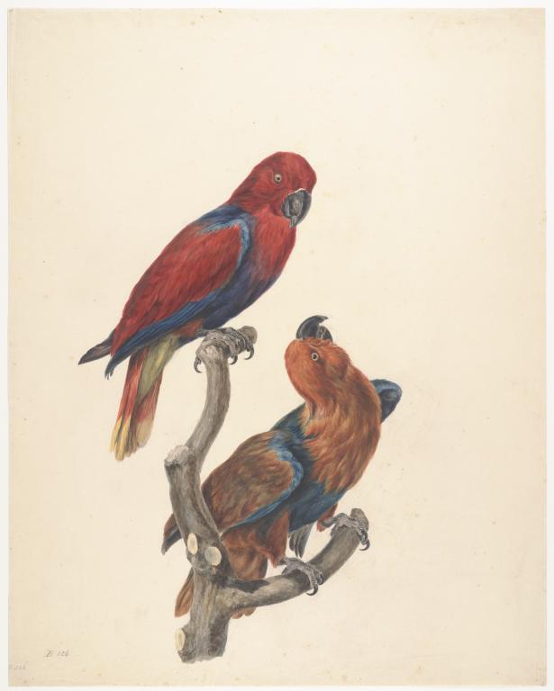 Twee vrouwelijke edelpapegaaien