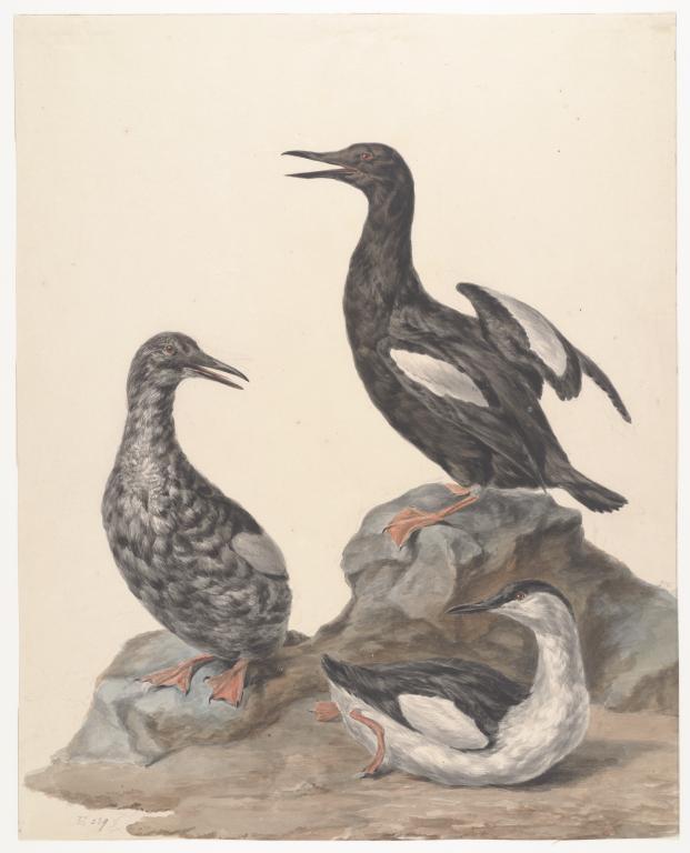 Drie zwarte zeekoeten op rots