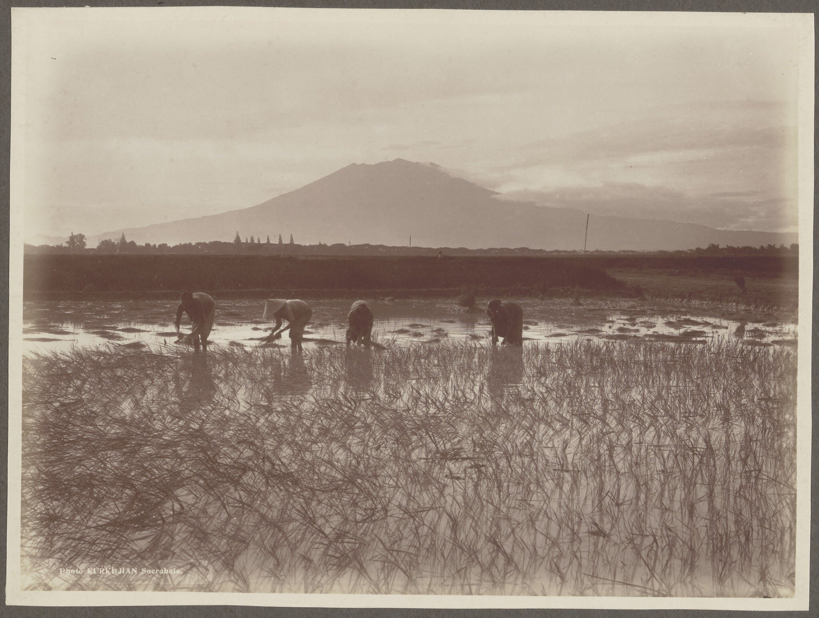 Women planting rice in a sawa near Madiun, at the fo...
