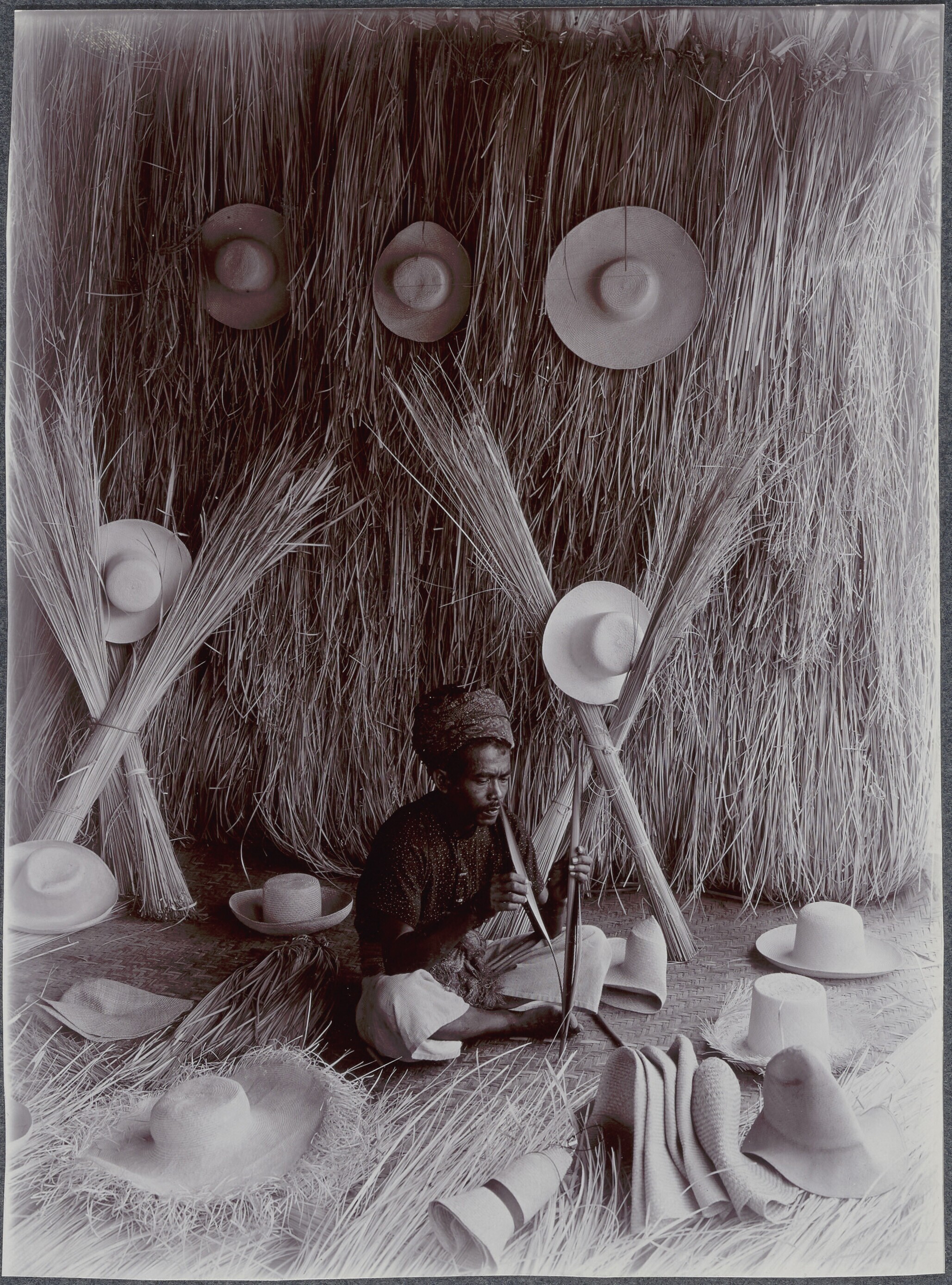 Het vlechten van hoeden van bamboe