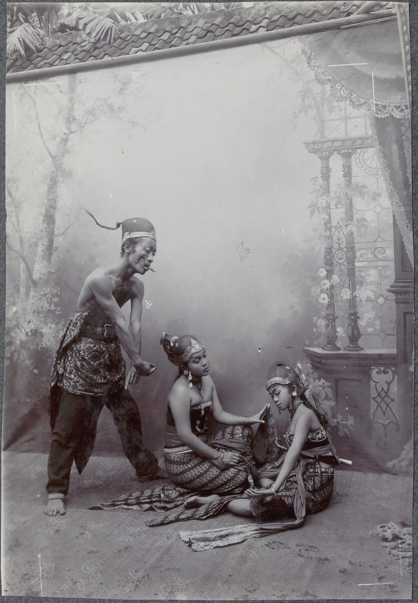Studioportret van een wajang wong danser en danseres