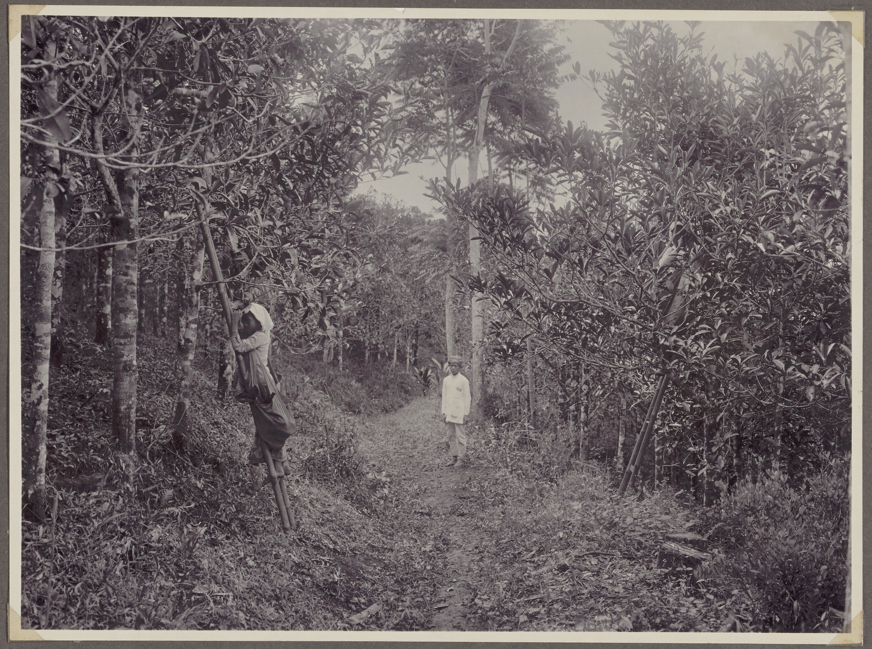 Women picking leaves of gutta-percha trees on the Tj...
