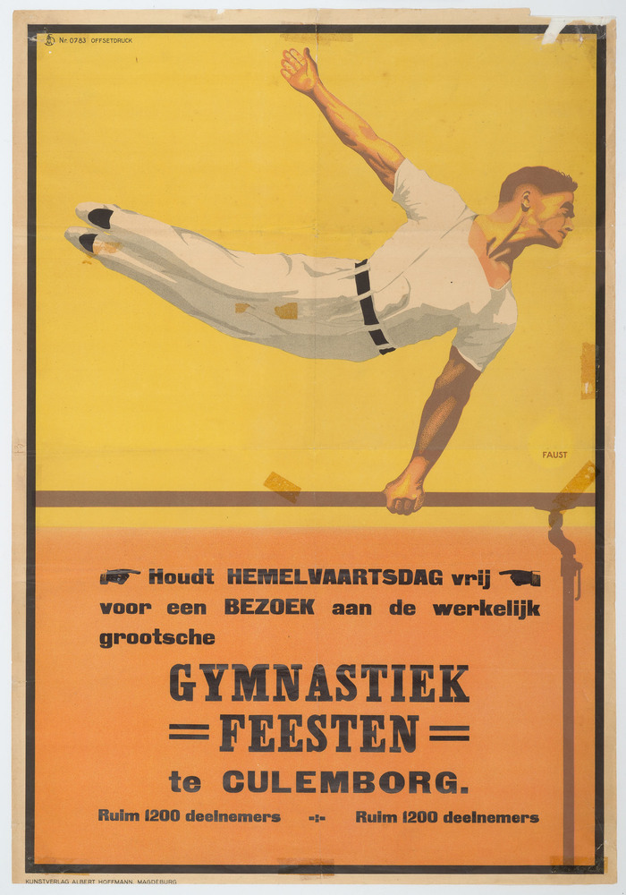 Affiche in meerkleurendruk voor de gymnastiekfeesten...