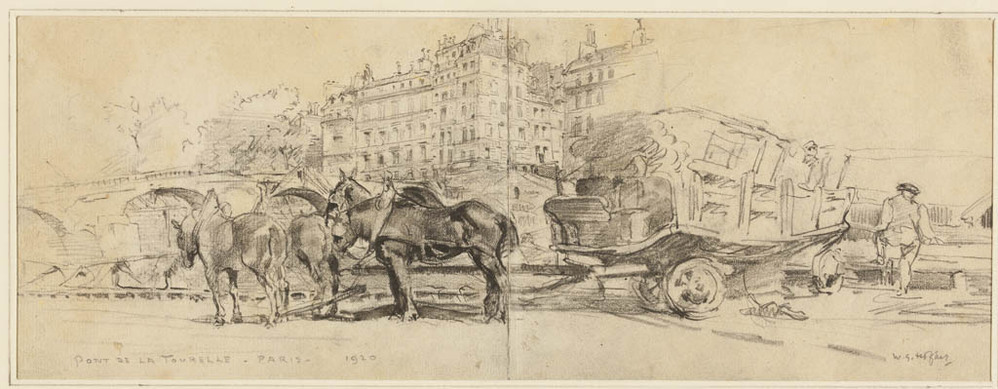 Studie van een man met een handkar