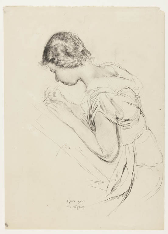Gerarda Rueter zittend aan een tafel, 1911