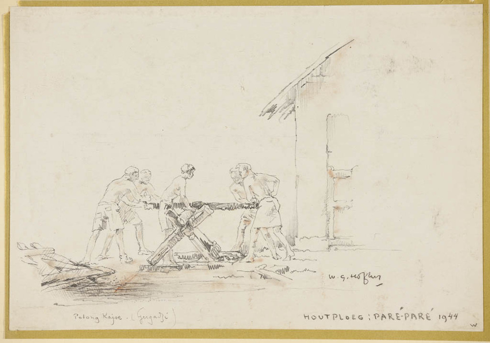 Tuin-arbeid onder toezicht van 'n "Heiho"